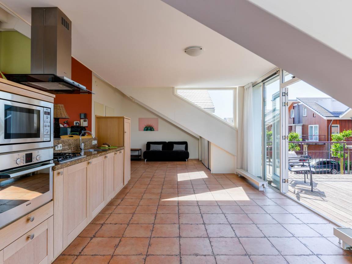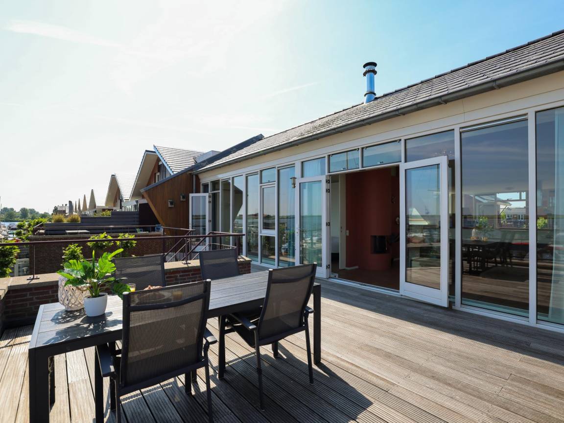 Hausbeschreibung : Ein außergewöhnliches Penthouse mit fantastischem, unverbaubarem Blick über das Uitgeestermeer. Von der Wohnung oder der Terrasse aus verfolgen Sie alles, was auf dem Wasser passiert. In diesem gemütlichen Penthouse in zentraler Lage können Sie sich völlig entspannen, in der offenen Küche kochen und viele Stunden draußen auf der großen Balkonterrasse am See genießen. Genießen Sie endlose tolle Aussichten!