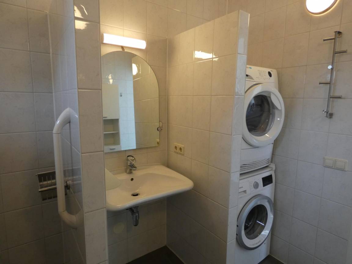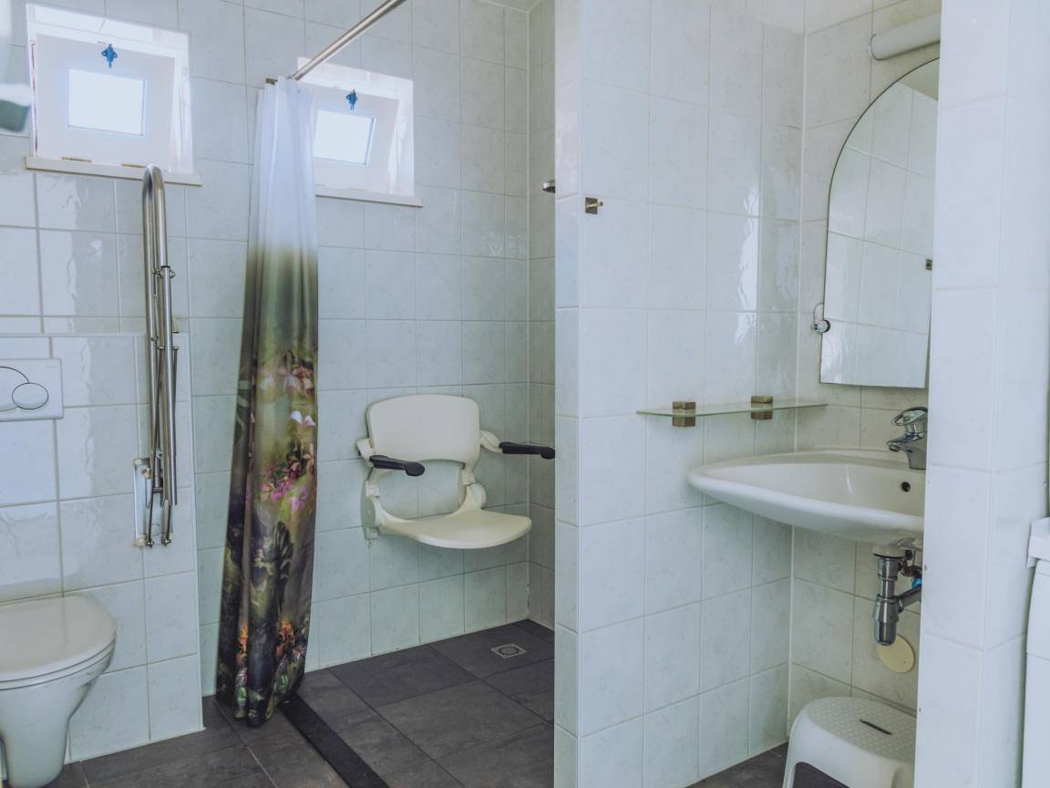 Layout : Parterre: Wohnzimmer mit TV(Kabel, Flatscreen, Niederländische TV-Kanäle, Deutsch Fernsehsender, internationale TV-Kanäle), Esstisch, Sitzecke, DVD-Player, Radio, CD-Spieler , Küche mit Kochplatte(4 Kochplatten, Induktion), Wasserkocher, Toaster, Dunstabzugshaube, Kaffeemaschine(cups), Kaffeemaschine(Filter), Kombi-Mikrowelle, Geschirrspüler, Kühl-/Gefrierkombination , Schlafzimmer mit Einzelbett(Synthetikbettdecke, Boxspring, 90 x 200 cm), Einzelbett angepasst für Behinderte(Synthetikbettdecke, 90 x 200 cm) , Schlafzimmer mit Etagenbett(Synthetikbettdecke, 90 x 200 cm) , Badezimmer mit Wäschetrockner, Dusche(angepasst für Behinderte), Waschbecken, Toilette(angepasst für Behinderte), Waschmaschine