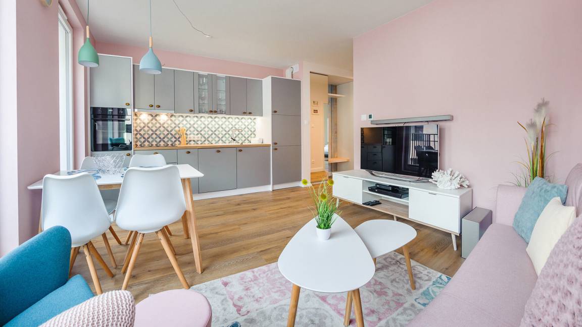 Zu den gewählten Apartments darf man mit dem Hund ankommen. Die zusätzlichen Kosten des Aufenthalts mit einem vierbeinigen Freund betragen 100 PLN (Einzelgebühr). Die Gäste, die den Aufenthalt mit dem Hund planen, bitten wir um eine frühere Kontaktaufnahme mit unserem Service im lokalen Büro.