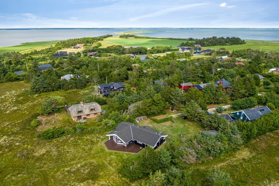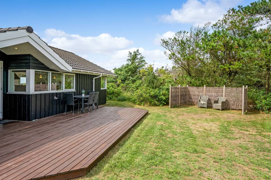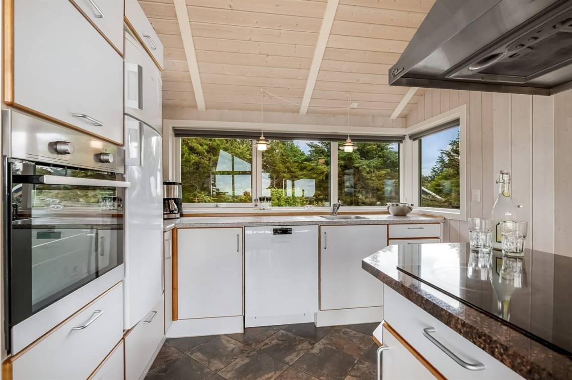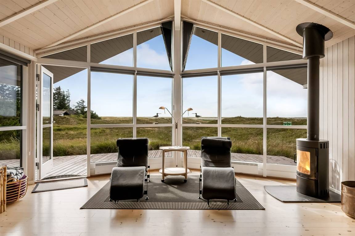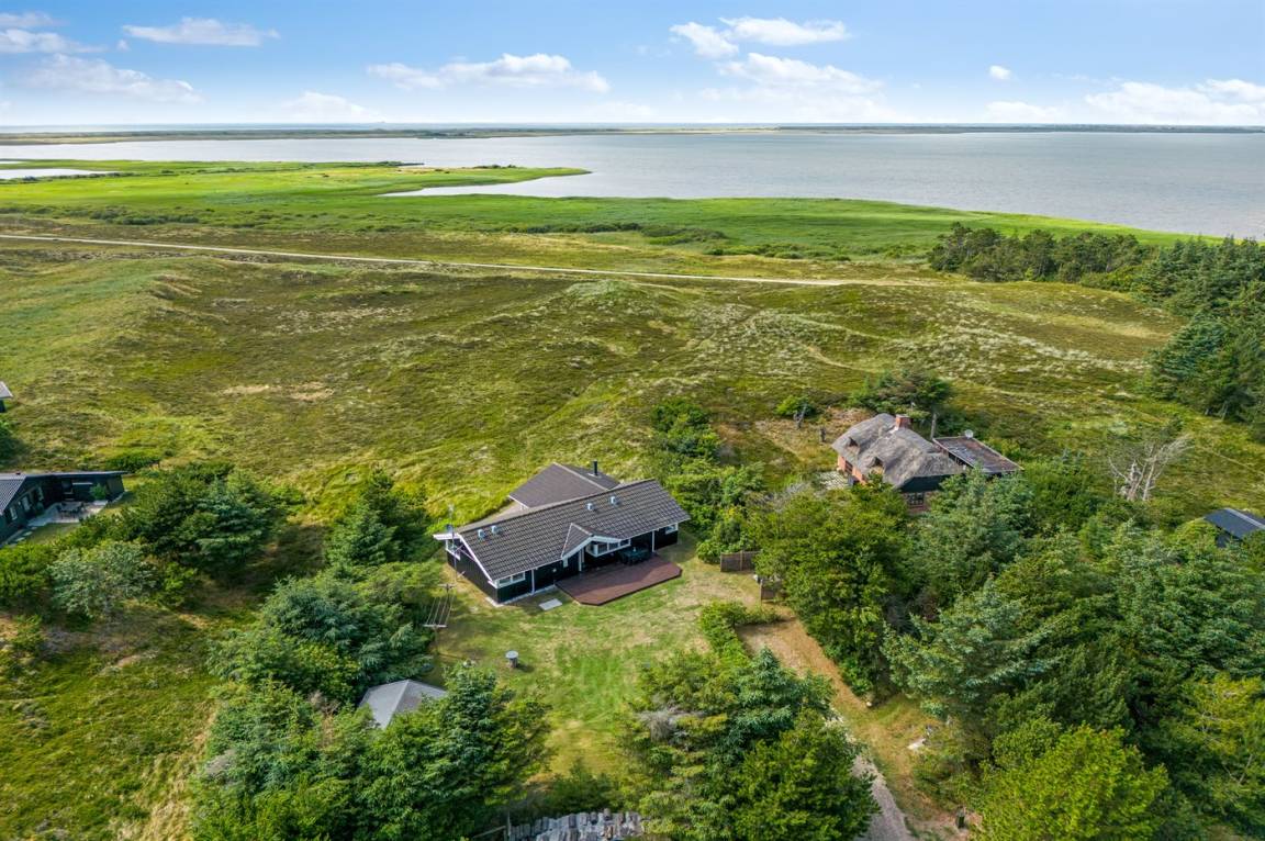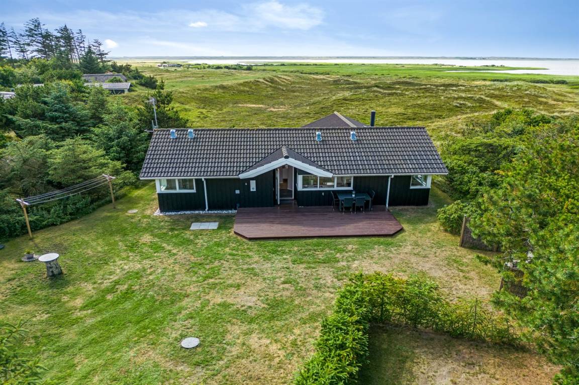 Herrliches Ferienhaus aus Holz, 2003 gebaut, auf einem Natur-/Dünengrundstück am Ende einer Straße gelegen. Vom Wohnzimmer aus Aussicht auf den Fjord und auf die Dünenlandschaft. Schönes Terrassenareal mit Gartenmöbeln. Das Haus ist geschmackvoll und mit neuen Möbeln eingerichtet. Die Wände und Decken sind mit Holz verkleidet. Ebenfalls Holzböden, jedoch beheizbarer Klinkerboden im Badezimmer und in der Küche. Nettes Badezimmer mit Duschnische, 2-Pers.-Whirlpool und direktem Zugang zur Sauna des Hauses. Schöne Küche mit u. a. Geschirrspüler, Mikrowelle, Umluftofen und Herd mit Ceran-Feld. Das Wohnzimmer enthält Kaminofen, Radio, TV mit digitalem Satellitenanschluss und DVD-Spieler. Die 6 Schlafplätze verteilen sich auf 3 Schlafzimmer; 2 mit Doppelbett und 1 mit 2 Einzelbetten. Ferner stehen Waschmaschine, Wäschetrockner und Kinderhochstuhl zur Verfügung.