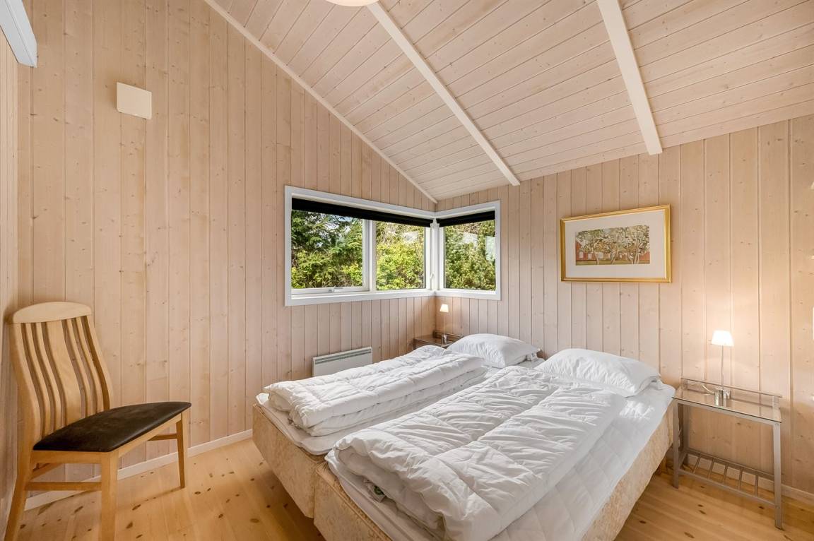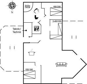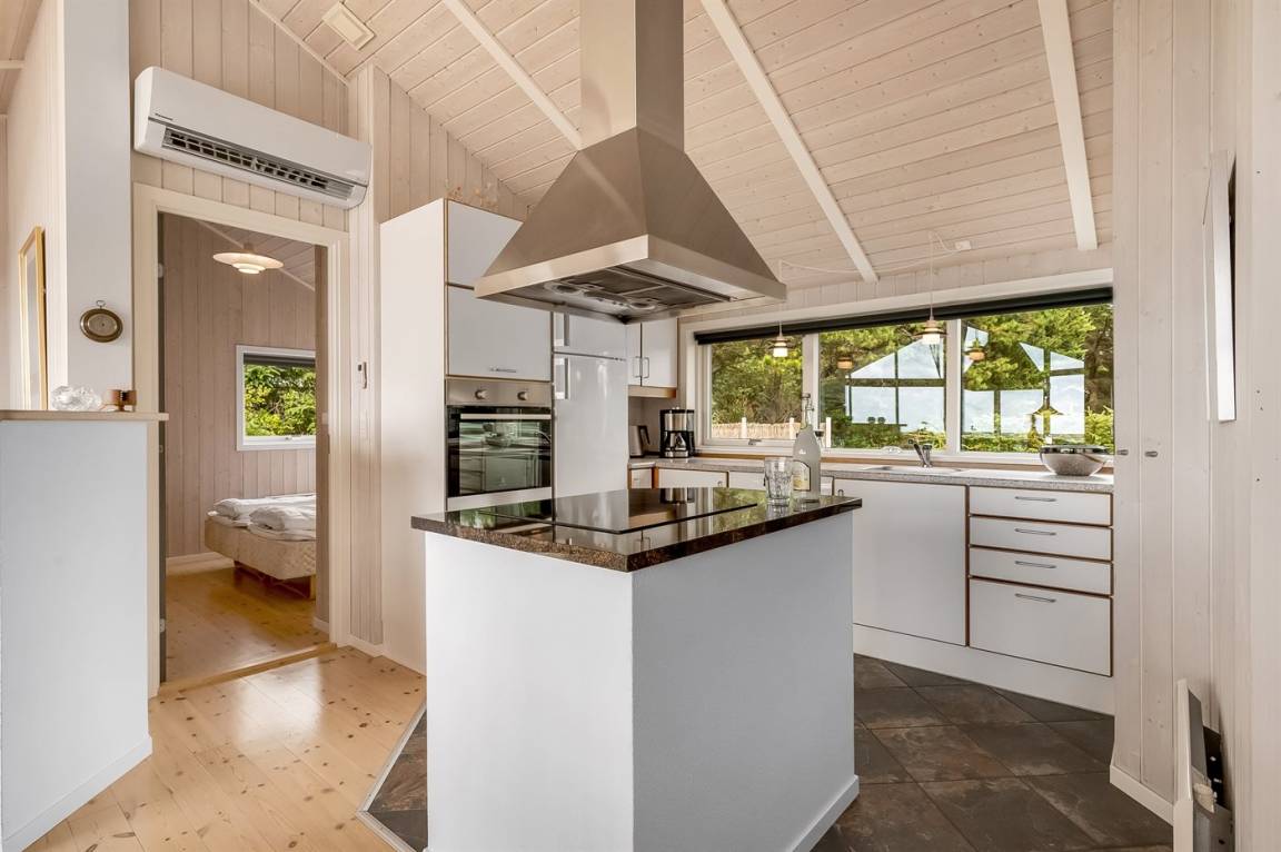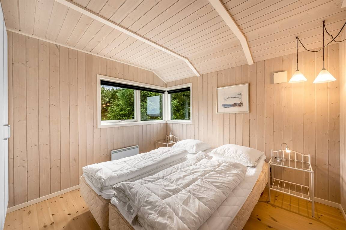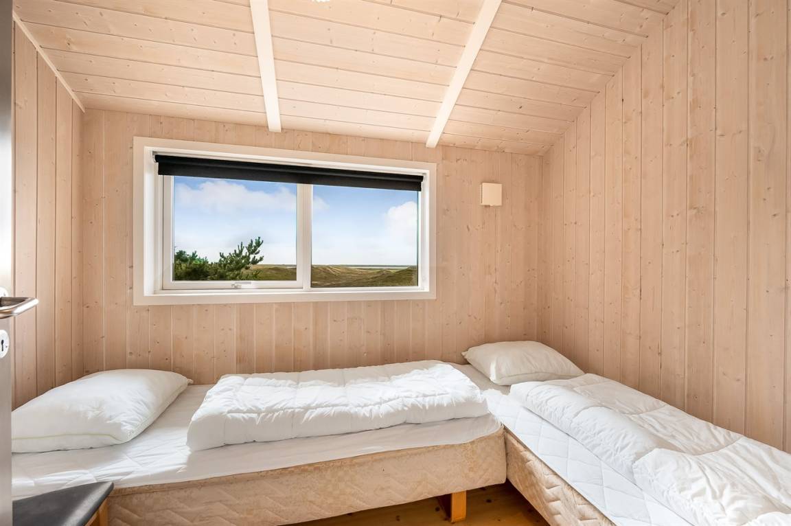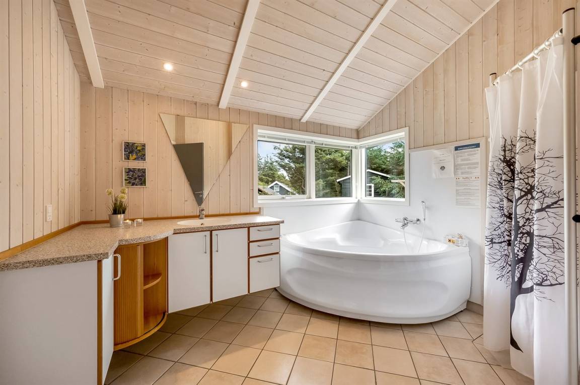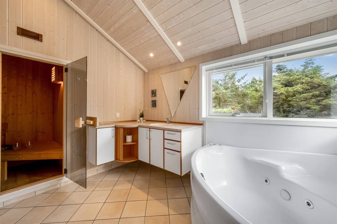 Herrliches Ferienhaus aus Holz, 2003 gebaut, auf einem Natur-/Dünengrundstück am Ende einer Straße gelegen. Vom Wohnzimmer aus Aussicht auf den Fjord und auf die Dünenlandschaft. Schönes Terrassenareal mit Gartenmöbeln. Das Haus ist geschmackvoll und mit neuen Möbeln eingerichtet. Die Wände und Decken sind mit Holz verkleidet. Ebenfalls Holzböden, jedoch beheizbarer Klinkerboden im Badezimmer und in der Küche. Nettes Badezimmer mit Duschnische, 2-Pers.-Whirlpool und direktem Zugang zur Sauna des Hauses. Schöne Küche mit u. a. Geschirrspüler, Mikrowelle, Umluftofen und Herd mit Ceran-Feld. Das Wohnzimmer enthält Kaminofen, Radio, TV mit digitalem Satellitenanschluss und DVD-Spieler. Die 6 Schlafplätze verteilen sich auf 3 Schlafzimmer; 2 mit Doppelbett und 1 mit 2 Einzelbetten. Ferner stehen Waschmaschine, Wäschetrockner und Kinderhochstuhl zur Verfügung.