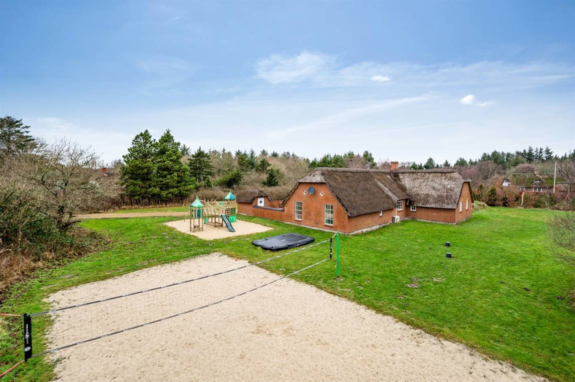 DraußenDie Ferienunterkunft liegt auf einem 5018 m² großen Naturgrundstück. Die Entfernung zum Meer beträgt 1700 m. Die nächste Einkaufsmöglichkeit liegt 500 m entfernt. Es steht ein offenes Terrassenareal zur Verfügung. Schaukel. Sandkasten. Trampolin. Spielturm. Rutsche.Beachvolley. Es ist ein Ladestecker für Elektroautos installiert. Mit einer Ladeleistung von 9 kW. Parkplatz auf dem Grundstück.