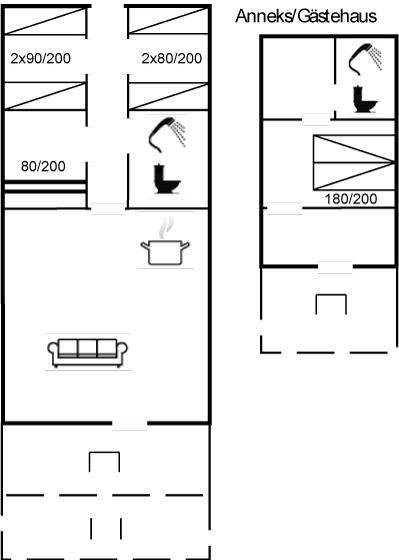 „Advice to other guests: Bitte beachten, das Doppelbett im Annex hat eine durchgehende Matratze und benötigt deshalb ein großes Bettlaken (180x200). The vacation at the holiday home: Die Schlüsselübergabe mit Schlüsseltresor ist eine ideale Lösung. Den Weg ins Servicebüro spart man sich so. Die Aufteilung von Haupthaus und Annex hat uns sehr gut gefallen. Die Austtattung des Hauses z. B. Kaffeemaschine und Spülmaschine, Wlan, TV sind top. Befremdlich ist nur der Standort der Tiefkühltruhe im Kinderzimmer. The local office: Der einzige Kontakt mit dem Bureau war die Benachrichtigung darüber, das das Haus frühzeitig einzugsfertig ist. Dies ist ein toller Service. Cleanliness: Wir haben unter anderem zwei Kleidungsstücke der Vormieter gefunden. Wie wurde gereinigt ohne die Sachen zu finden? Der Fliesenspiegel in der Küche war nicht sauber und andere Kleinigkeiten, welche wir einfach selbst beseitigt haben. Im Annex unter dem Sofa sehr viel Staub und im Bad Sand. Dieses Bad im Annex hat ein Problem mit der Feuchtigkeit, die Fugen sind schwarz vor Schimmel, da bräuchte es wohl eine aufwendigere Grundreinigung oder Sanierung. Im Ofen waren noch Brandreste.“