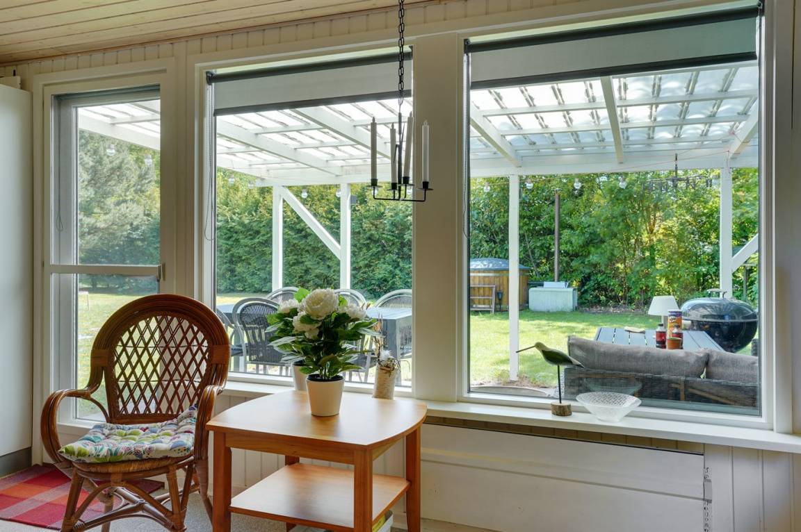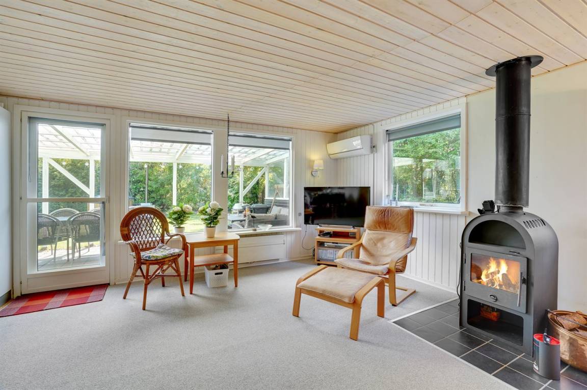 DraußenDie Ferienunterkunft liegt auf einem 902 m² großen Naturgrundstück. Die Entfernung zum Meer beträgt 5000 m. Die Entfernung zum Fjord beträgt 600 m. Die nächste Einkaufsmöglichkeit liegt 3000 m entfernt. In einem Abstand von 15000 m gibt es einen Golfplatz. Es stehen sowohl offene als auch überdachte Terrassen zur Verfügung. Windschutzhütte. Parkplatz auf dem Grundstück.