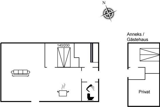 SchlafverhältnisseDie Schlafplätze verteilen sich auf 3 Schlafräume. 4 Schlafplätze in Doppelbetten. 2 Schlafplätze in einem Etagenbett. 2 von diesen Schlafplätzen befinden sich im Gästehaus. Ferner steht ein Kinderbett zur Verfügung.