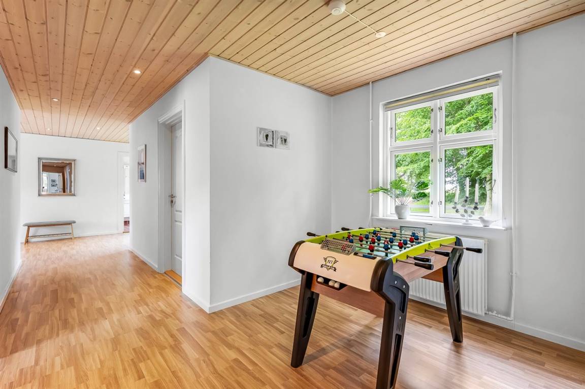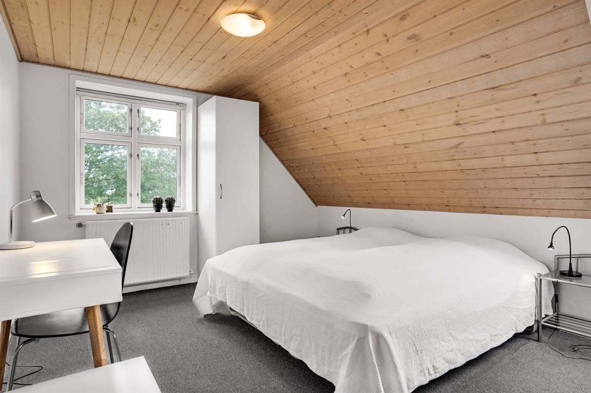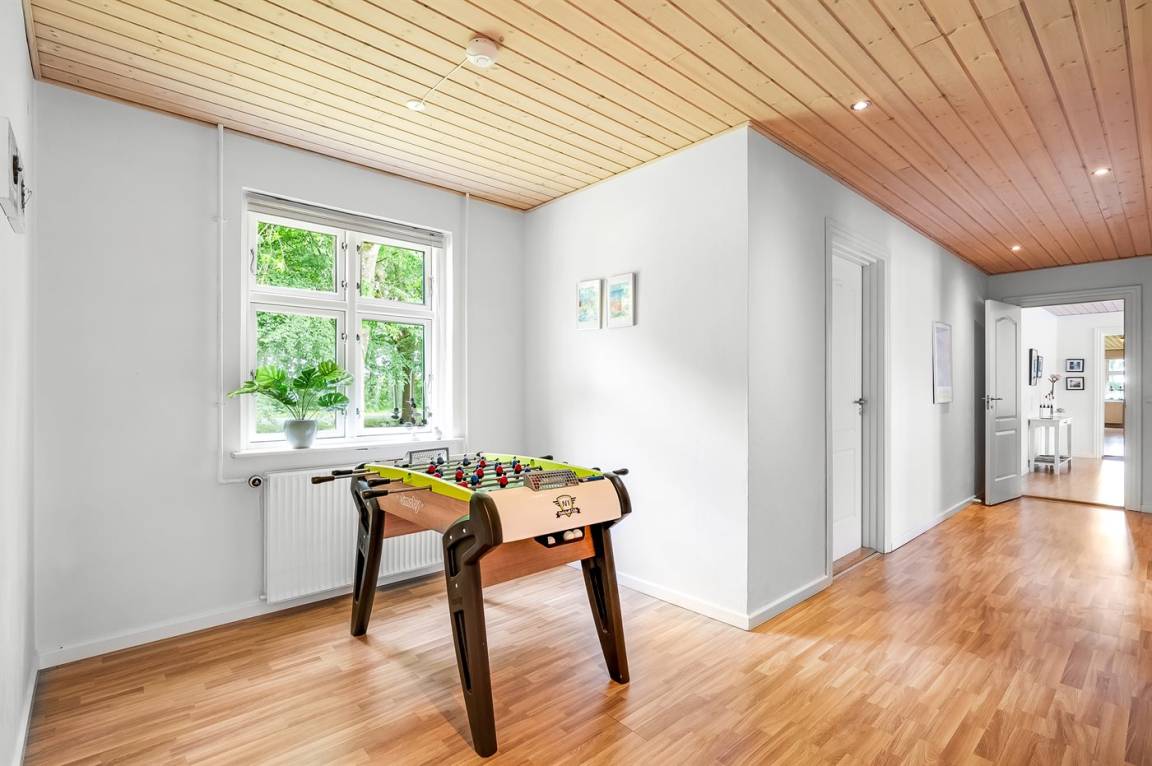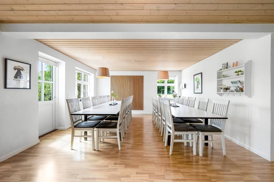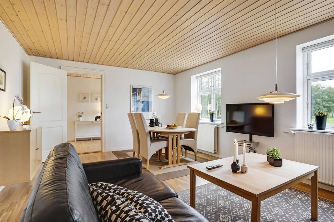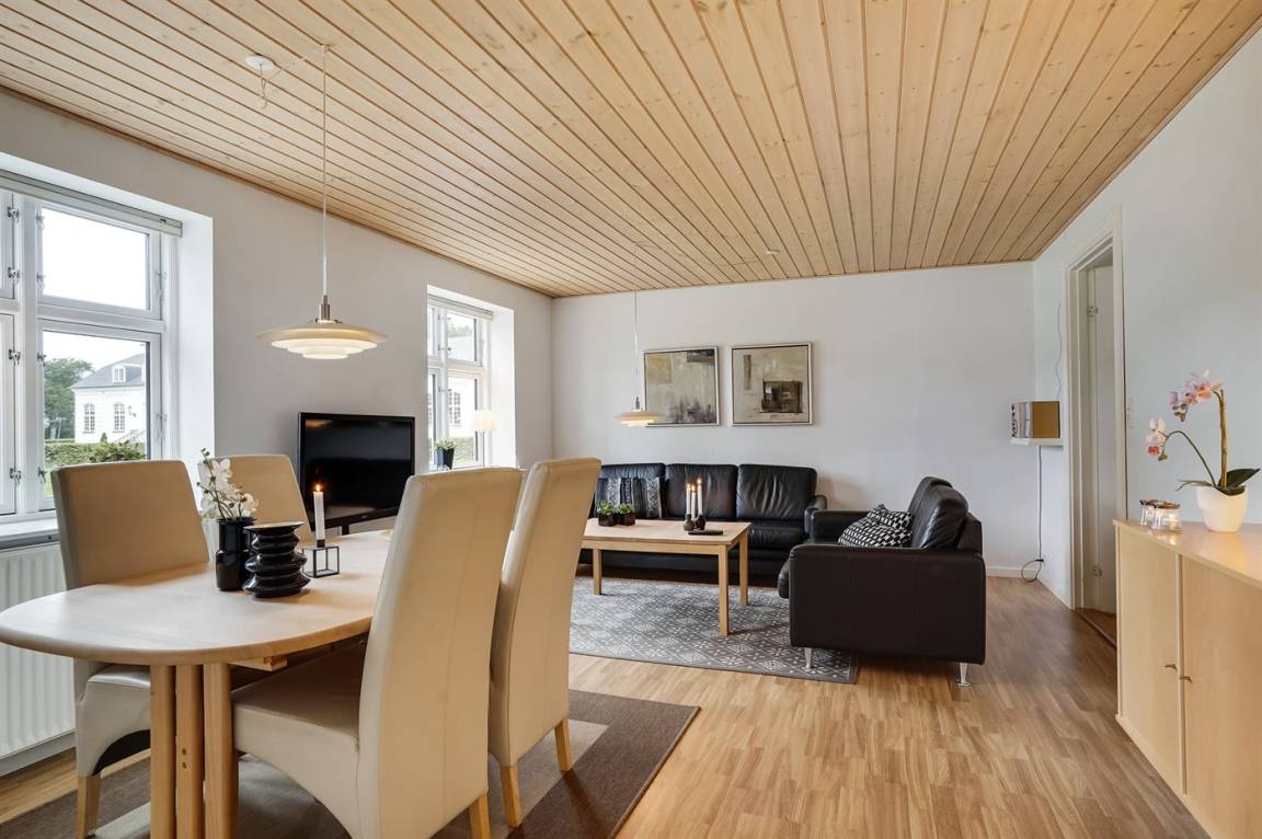 In naturschöner Umgebung neben dem Herrenhaus "Pallisbjerg" liegt der "Turmflügel", der aus 2 Wohnungen, der "Nordflügel" und der "Südflügel" besteht. Die 2-stöckigen Ferienwohnungen sind in gepflegter Umgebung eingerichtet und liegen in einem ruhigen Gebiet mit einem reichen Tier- und Vogelleben. Hier bieten sich gute Möglichkeiten, sich zu entspannen, Spaziergänge zu machen und schöne Naturerlebnisse mit nach Hause zu nehmen. Die Wohnungen werden durch einen Ofen für Holzpillen beheizt. Zur gemeinsamen Nutzung stehen Sandkasten, Schaukel, Trampolin und 2 Fußballtore zur Verfügung. Es besteht die Möglichkeit den "Nordflügel" und den "Südflügel" zusammen zu Mieten, da es eine Verbindungstür gibt. Platz für bis zu 30 speisende Gäste. Für nähere Informationen rufen Sie uns an.