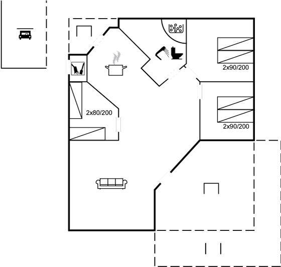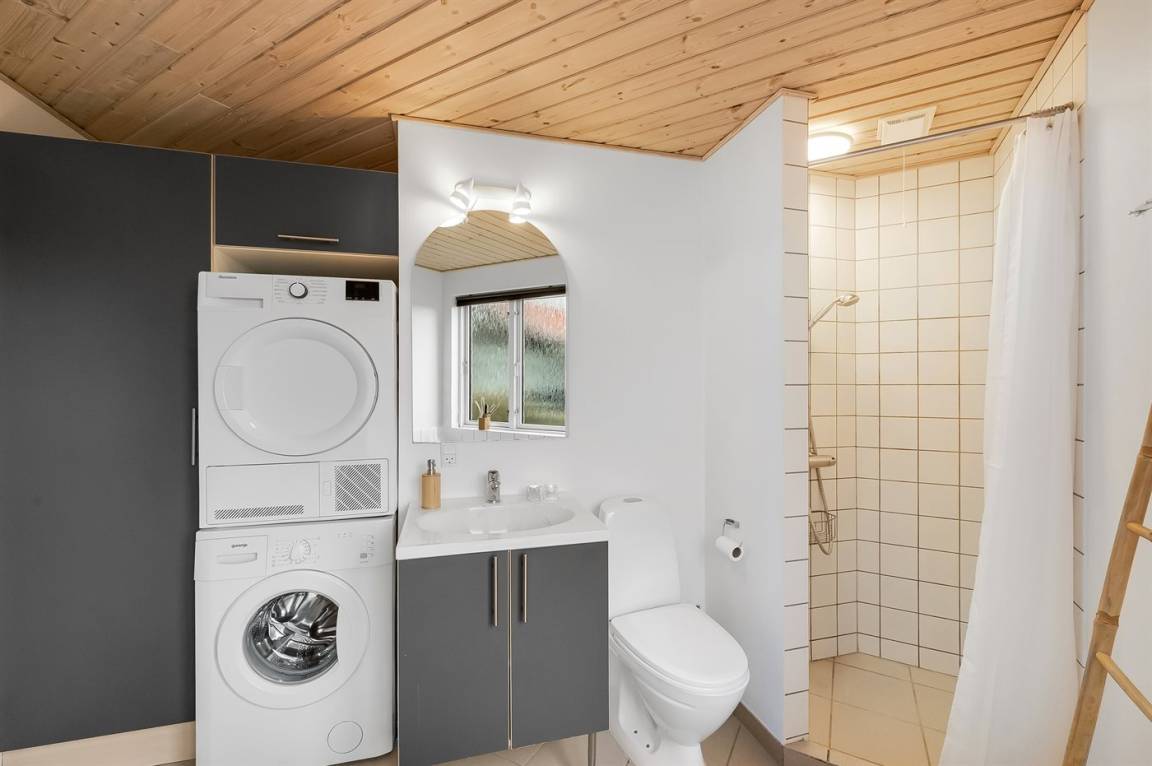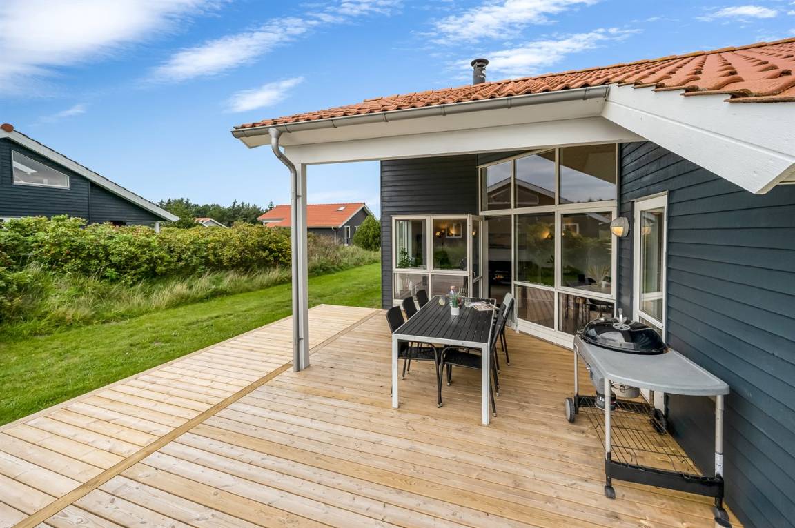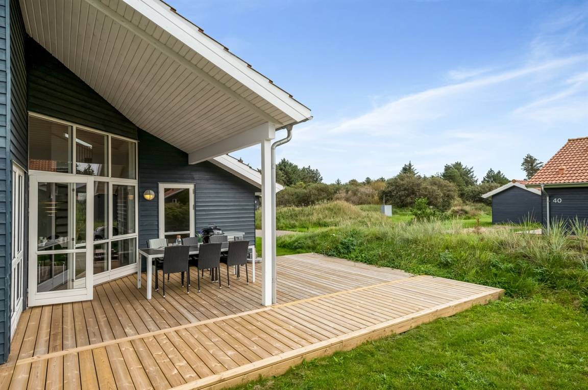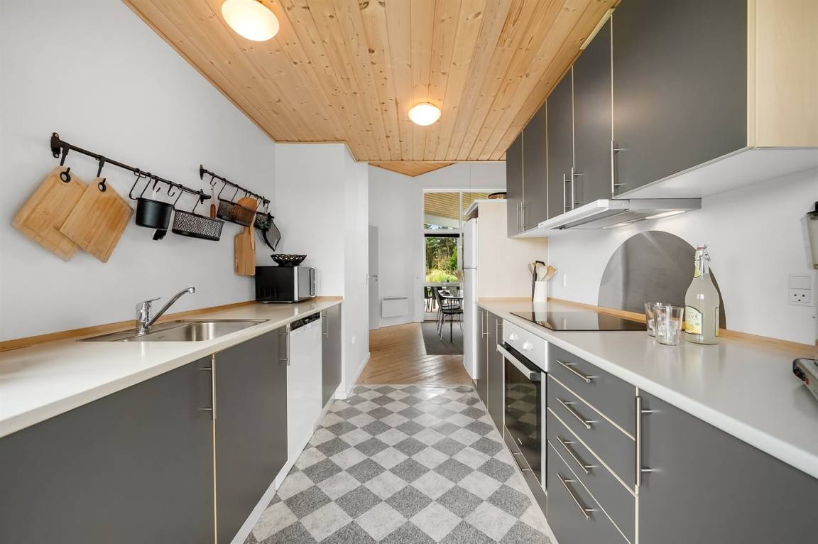 Das Ferienhaus liegt auf einem 400 m² großen Naturgrundstück. Die Entfernung zum Meer beträgt 800 m und zum Fjord sind es 1000 m. Die nächste Einkaufsmöglichkeit ist 3000 m entfernt. Zum Haus gehören eine offene Terrasse und eine überdachte Terrasse. Ein Geräteraum ist ebenfalls vorhanden. Ein Spielplatz liegt nur 150 m entfernt. Ein Carport steht zur Verfügung, ebenso wie ein Grill. Parkmöglichkeiten gibt es direkt am Haus.