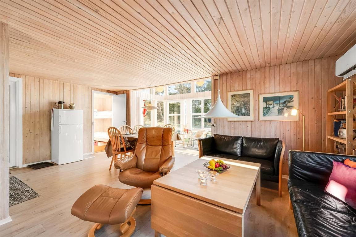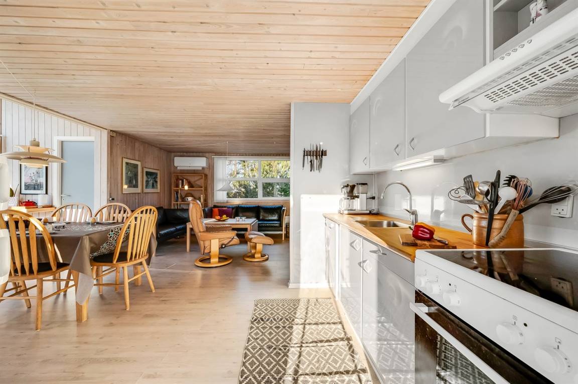 DraußenDie Ferienunterkunft liegt auf einem 900 m² großen Naturgrundstück. Die Entfernung zum Meer beträgt 1300 m. Die Entfernung zum Fjord beträgt 700 m. Die nächste Einkaufsmöglichkeit liegt 3000 m entfernt. Es steht ein offenes Terrassenareal zur Verfügung. Außerdem gibt es überdachte Terrasse. Parkplatz auf dem Grundstück.