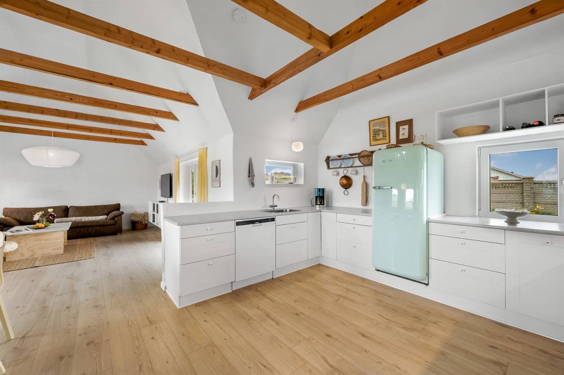 DraußenDie Ferienunterkunft liegt auf einem 1133 m² großen Naturgrundstück. Das Grundstück ist eingezäunt. Die Entfernung zum Meer beträgt 175 m. Die Entfernung zum Fjord beträgt 400 m. Die nächste Einkaufsmöglichkeit liegt 300 m entfernt. Es steht ein offenes Terrassenareal zur Verfügung. Parkplatz auf dem Grundstück.
