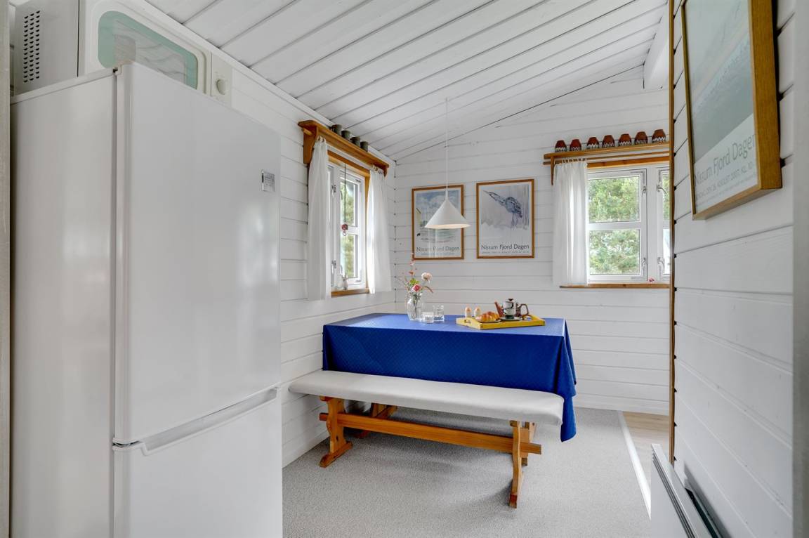DraußenDie Ferienunterkunft liegt auf einem 946 m² großen Naturgrundstück. Das Grundstück ist eingezäunt. Die Entfernung zum Meer beträgt 5000 m. Die Entfernung zum Fjord beträgt 220 m. Die nächste Einkaufsmöglichkeit liegt 1700 m entfernt. Es steht ein 40 m² Terrassenareal zur Verfügung. Es steht ein Grill zur Verfügung. Parkplatz auf dem Grundstück.