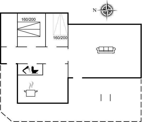 SchlafverhältnisseDie Schlafplätze verteilen sich auf 2 Schlafräume. 4 Schlafplätze in Doppelbetten.