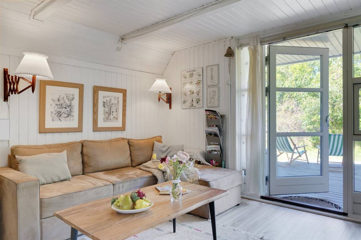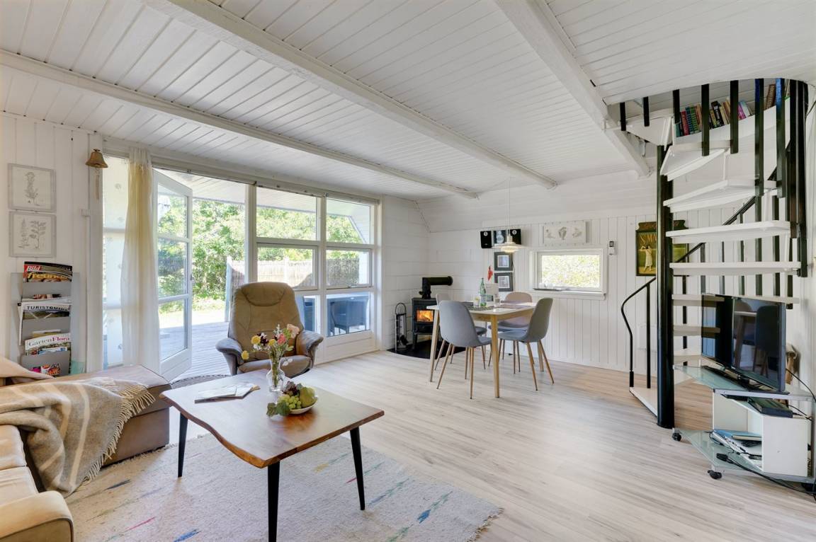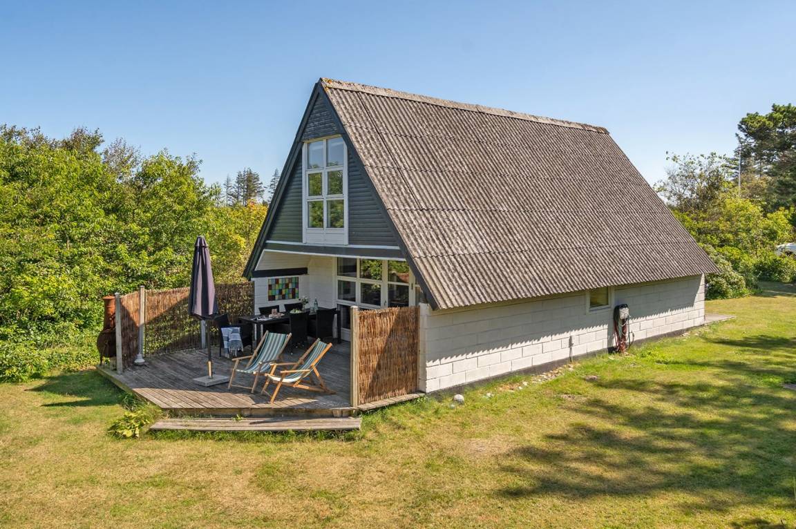 Auf einem schönen Grundstück, völlig ungestört, liegt dieses nette Ferienhaus in einem kleinen und ruhigen Ferienhausgebiet zwischen Meer und Fjord.