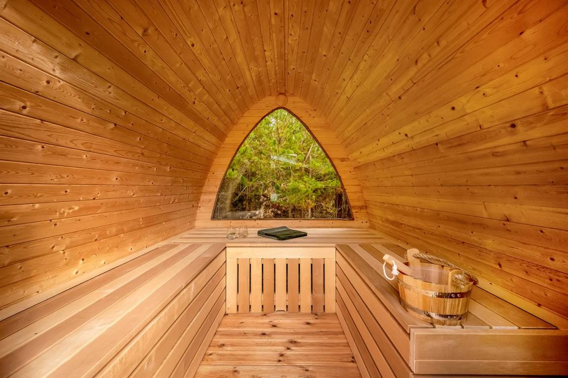 Auf der Terrasse kann man sich im schönen Hot-Tub für 6 Personen so richtig entspannen oder die wärme in der Outdoor-Sauna genießen.