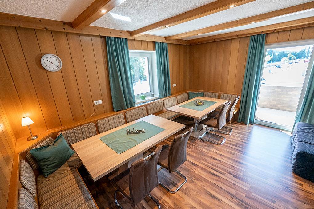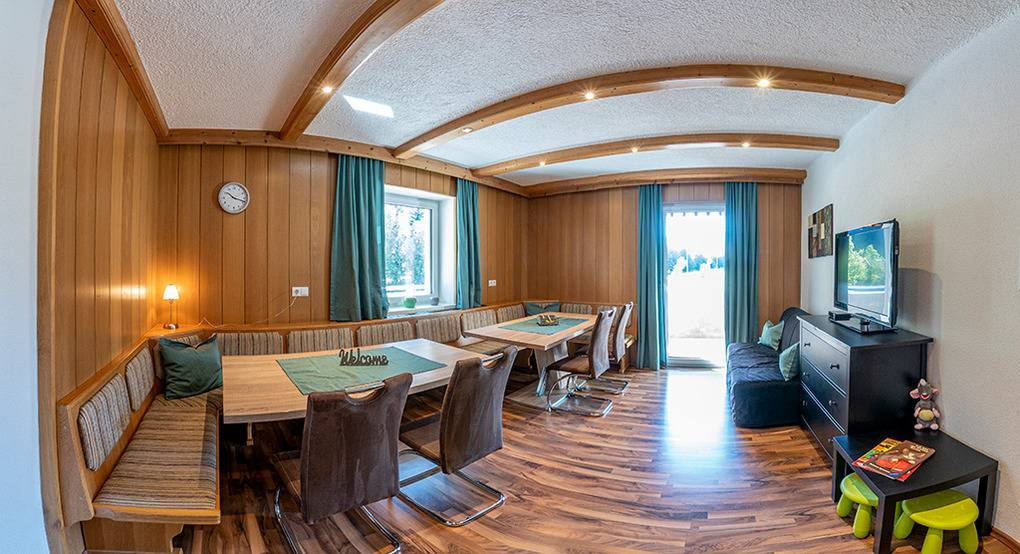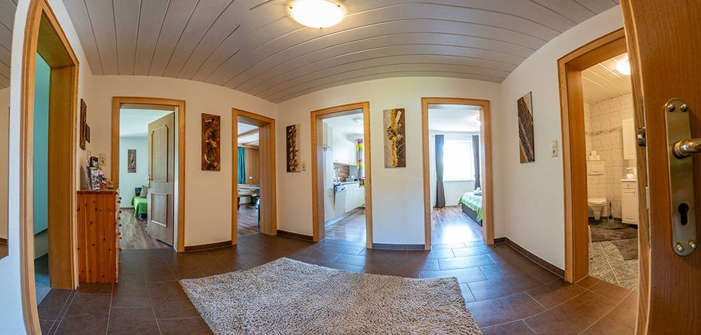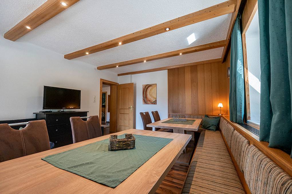 Haus: Schönes, regionstypisches Ferienhaus mit drei Ferienwohnungen mit Balkon (Sitzmöbeln), herrlichem Bergblick. Nichtraucherwohnungen. Kostenloser Internetzugang über W-Lan. Zentralheizung oder Fußbodenheizung. Beheizter Ski-/ Schuhraum und Abstellraum (Schuhe, Rodelschlitten, Kinderwagen). Gemütlicher Eingangsbereich im Haus mit Kaminofen. Kleine Bibliothek des Vermieters zur gemeinschaftlichen Nutzung. 2 Pkw-Stellplatz.