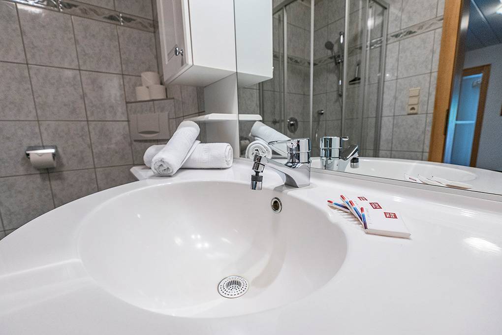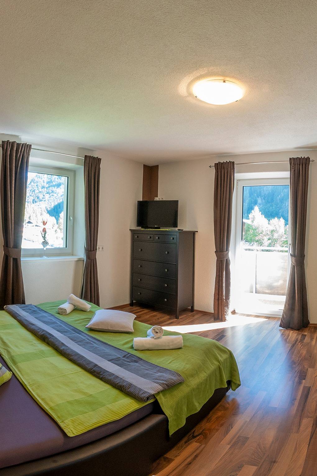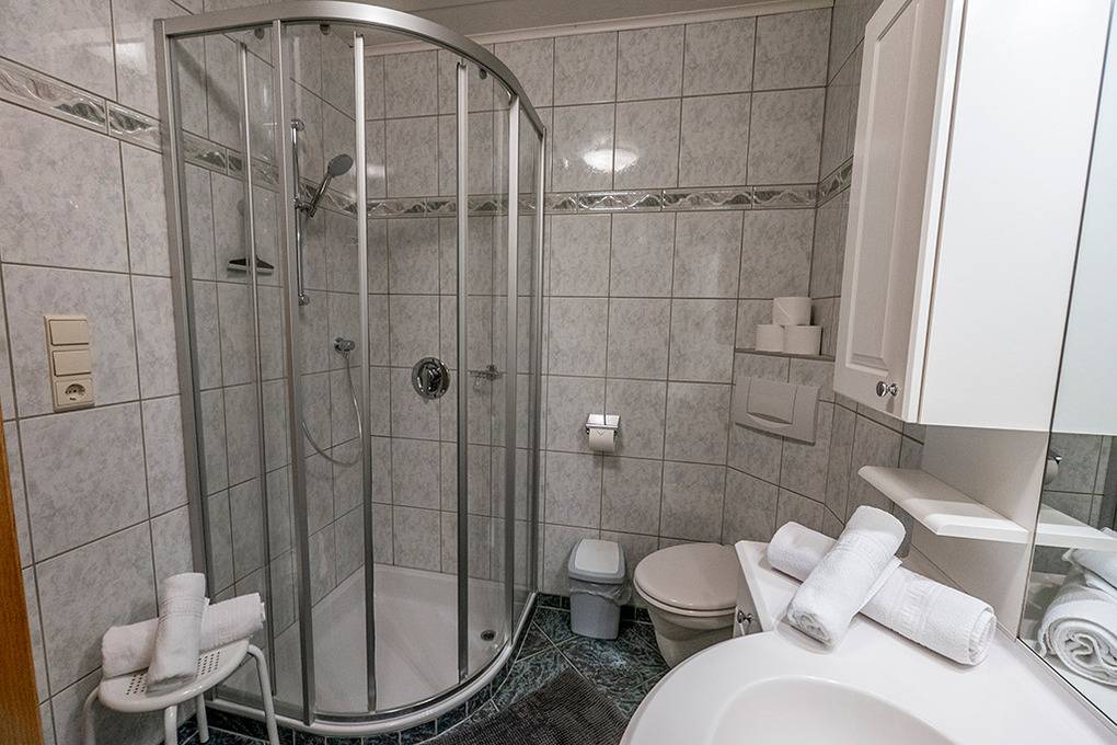 A 154.19 Wohnung 1-5 Pers.: 3-Zimmerwohnung, 80 qm Wohnfläche, 1. Etage. Großzügiger Wohn-/Essraum mit Esstisch, Couch, Sat-TV, kleiner Kinderspielecke, Balkon. Separate Küche mit sehr gut ausgestatteter Küchenzeile (Backofen, Mikrowelle, Spülmaschine). Doppelzimmer mit Sat-TV. 3-Bettzimmer mit Doppelbett, Einzelbett (Schlafcouch), Sat-TV, großem Balkon mit Bergblick. Bad: Dusche, Badewanne, Waschbecken, WC.