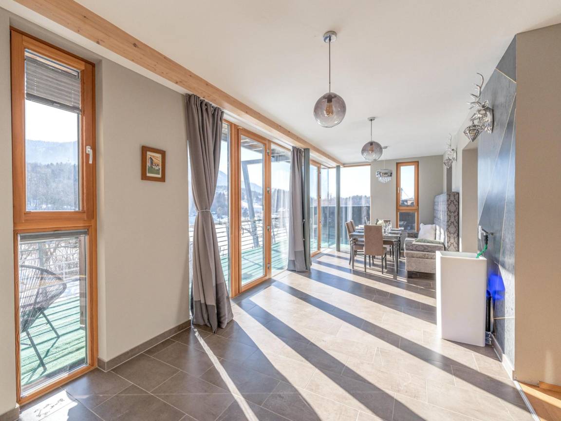 Hausbeschreibung : Diese moderne Ferienwohnung befindet sich 1 Minute Fußweg vom Aichwaldsee entfernt, wo ein privates Seegrundstück auf Sie wartet. Die Ferienwohnung befindet sich im ersten Stock und ist komplett ausgestattet. Sie können direkt vor dem Haus parken. Die Ruhe und die frische Kärntner Luft machen ihr Feriendomizil zum ultimativen Ort zum Genießen und es ist der ideale Ausganspunkt für alle Arten von Ausflügen