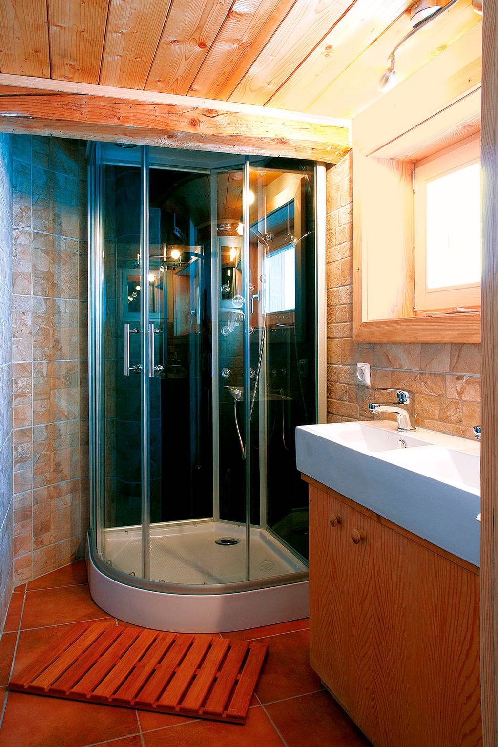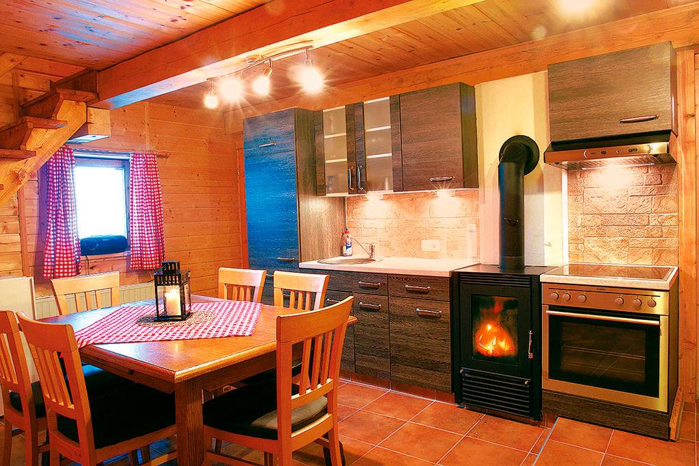 Haus: Moderne, komfortable Almhütte mit Sauna und Kaminofen. 6-Zimmerhaus mit ca. 130 qm Wohnfläche über 2 Etagen. Kostenlosen Internetzugang über W-Lan. Rustikal-gemütliche Atmosphäre durch Holzvertäfelung in allen Räumen. Holzheizung.