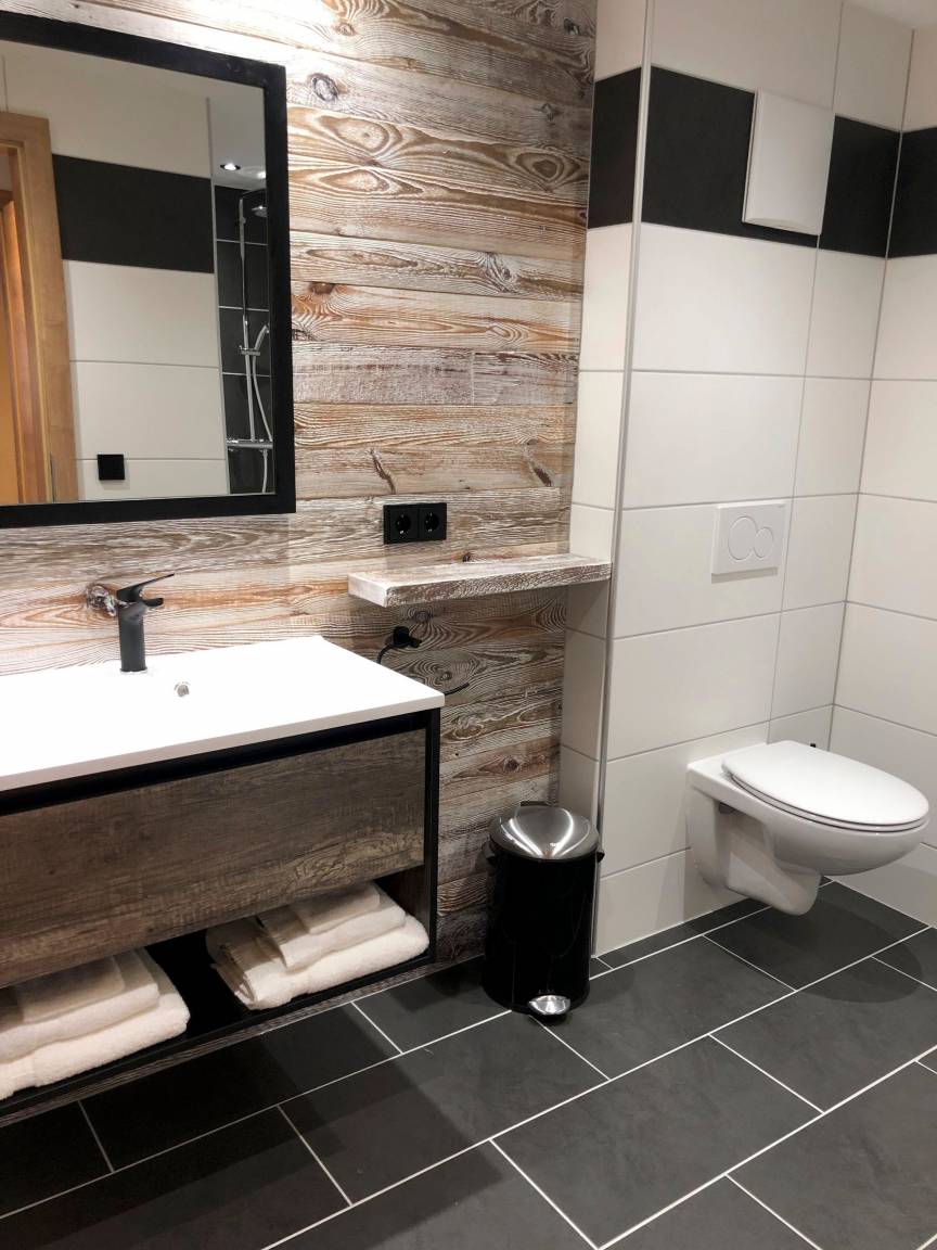 1. Stock: 1 Doppel-, 1 Dreibett-, 1 4Bettzimmer mit Dusche und WC, Balkon und TV, 2021 komplett neu renoviert und eingerichtet mit hochwertigen, maßgetischlerten Holzmöbeln