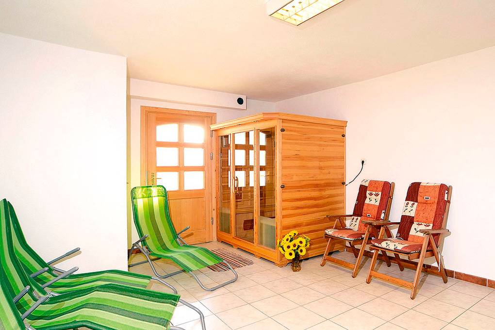 A 650.6 Wohnung 1-10 Pers.: 4 1/2-Zimmerwohnung mit 100 qm Wohnfläche, Parterre. Wohnküche mit Esstisch, Eckbank, Sat-TV, Küchenzeile (Backofen, Spülmaschine). Einzelzimmer mit Wb. Doppelzimmer mit Du, Wb. 3-Bettzimmer mit Doppelbett, Einzelbett, Du, Wb. 4-Bettzimmer mit Doppelbett, Etagenbett, Du, Wb. Separates WC. Infrarot-Sauna, separates WC.