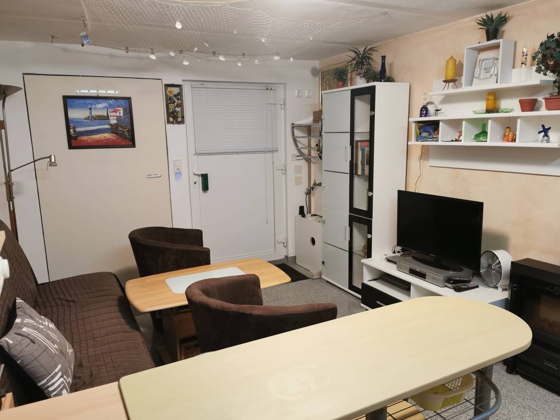 Die Wohnung im Erdgeschoss beinhaltet 1 Wohnküche, 1 Schlafzimmer, 1 Badezimmer und einen Flur mit Kleiderschrank. dazu einen großzügigen separaten Außenbereich mit PKW-Parkplatz, zwei überdachten Sitzflächen und einem wunderschönen Blick auf die fjordähnliche Stauseelandschaft.