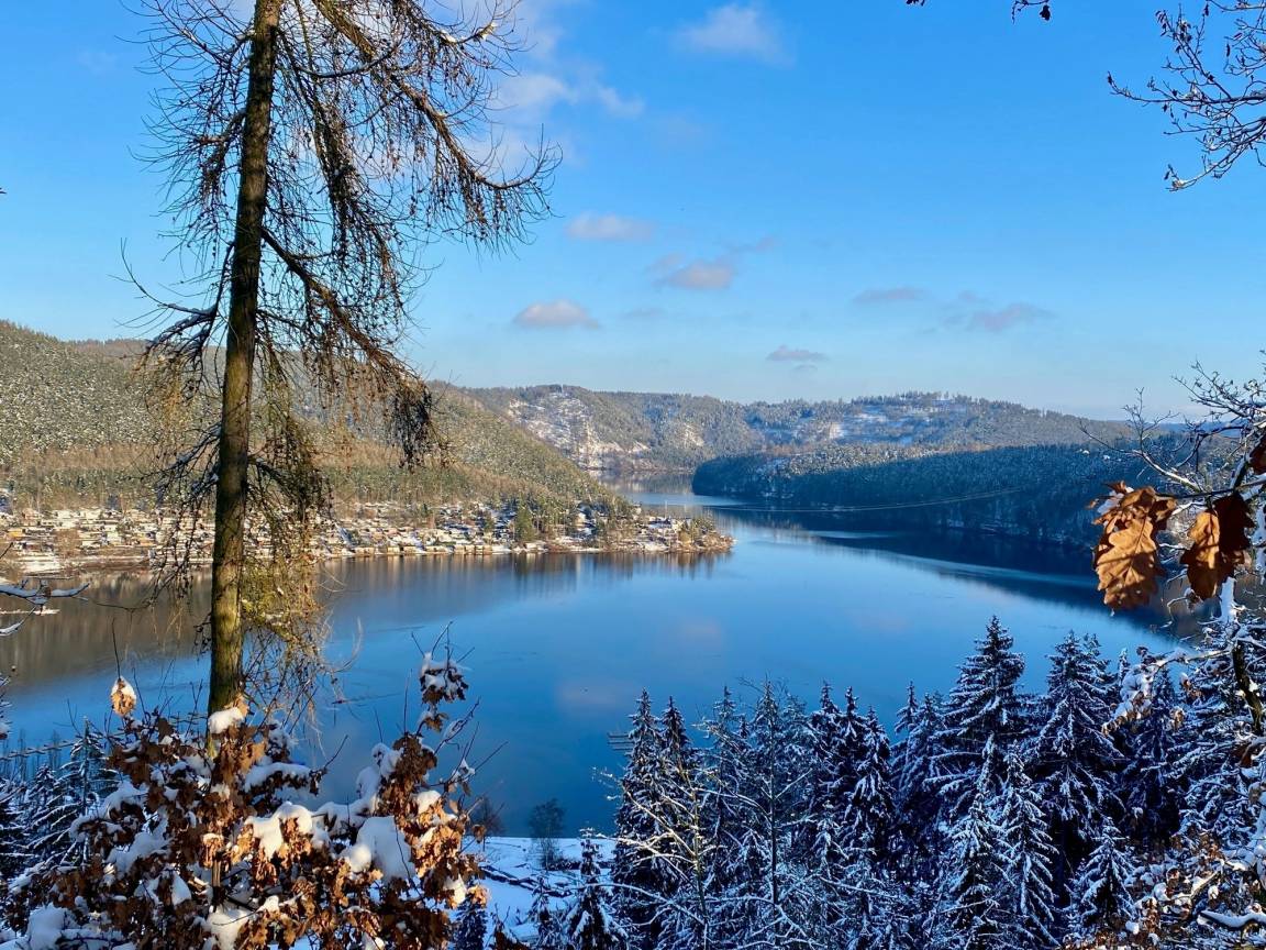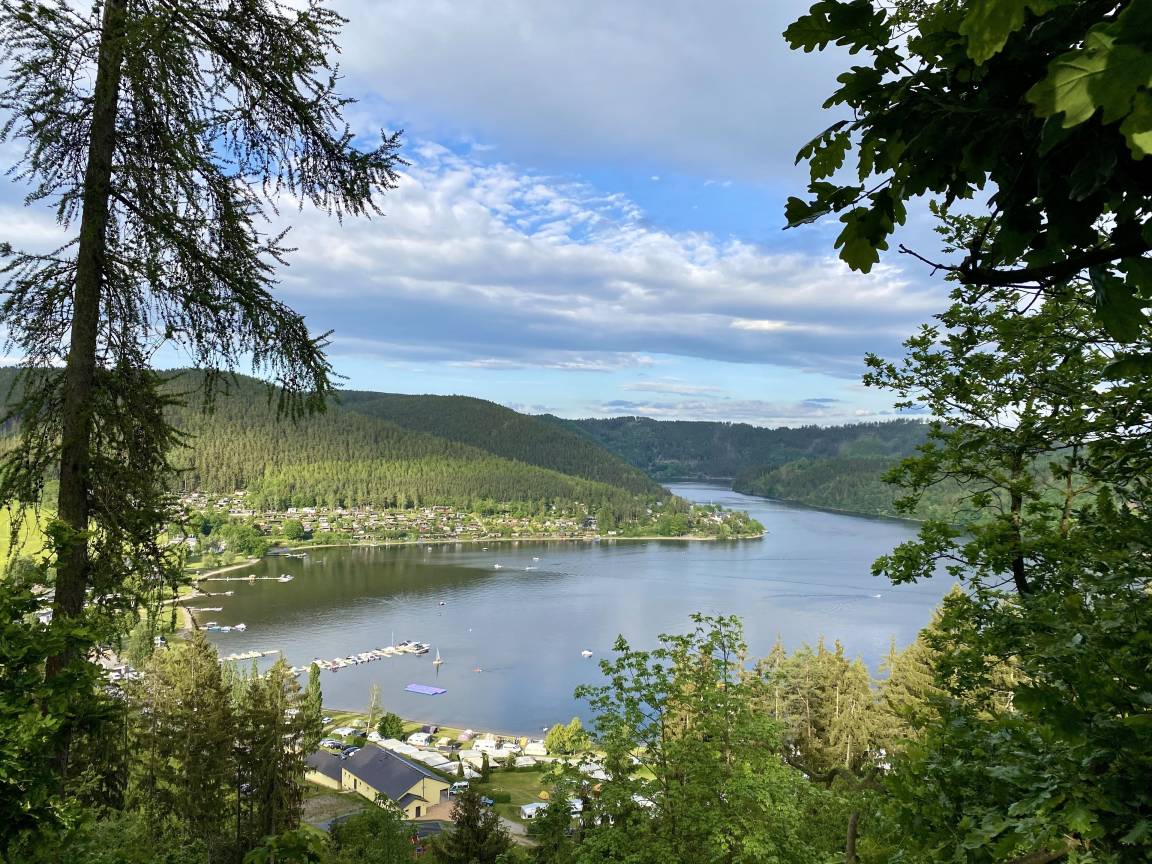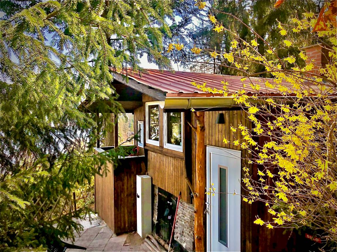 Das Haus "Wald-See-Glück" ist ein wahres Natur-Idyll. Umrahmt von hohen Kiefern, kann man die Eichhörnchen und Siebenschläfer von Baum zu Baum hüpfen sehen und hat gleichzeitig einen herrlichen Blick auf den Hohenwarte-Stausee, dessen Ufer- bzw. Strandbereich ca. 200 m entfernt ist.