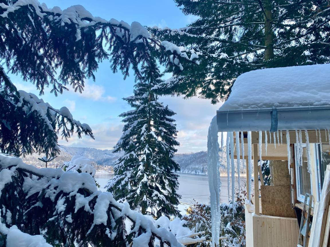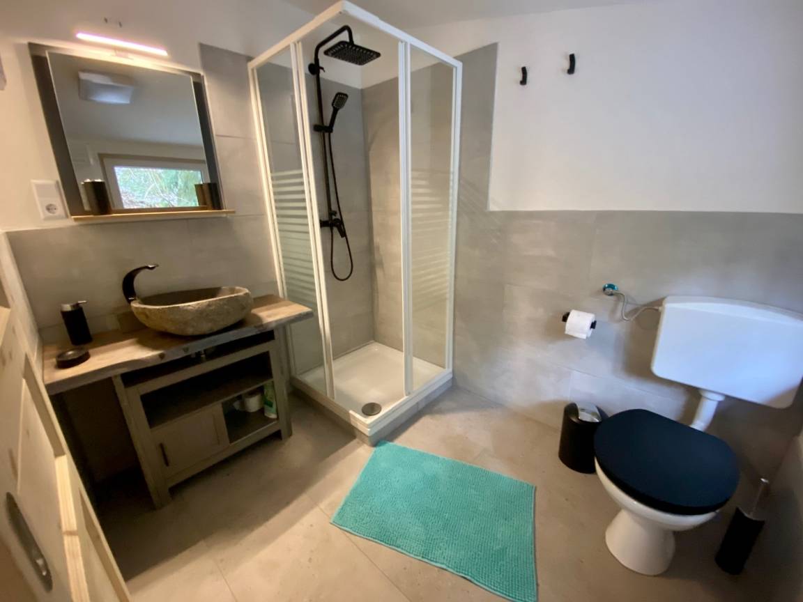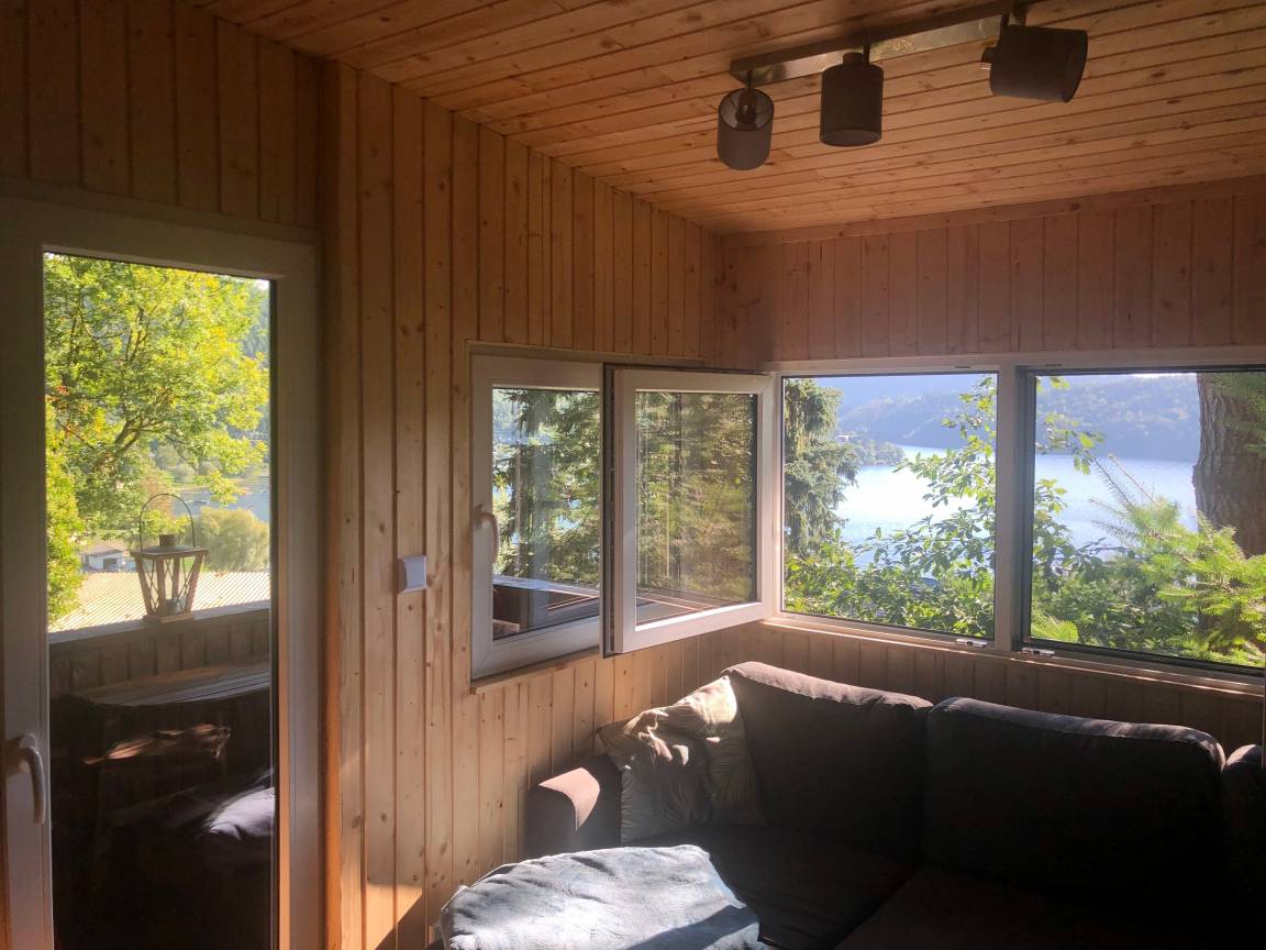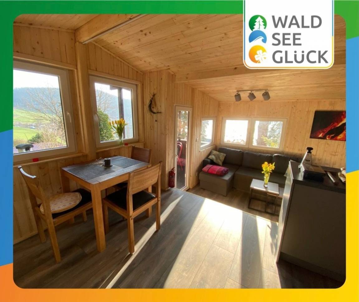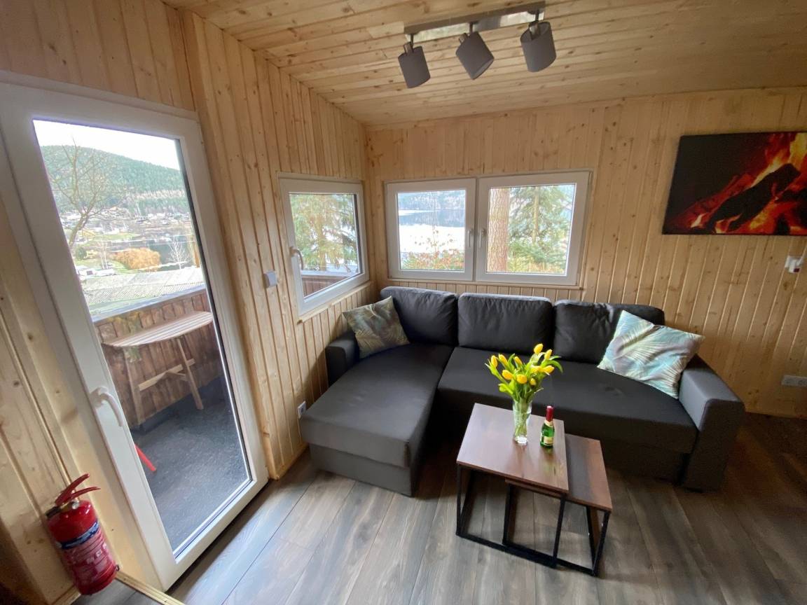 Unsere "Glückshütte" wurde bis März 2020 komplett umgebaut und modernisiert. Die Gäste erwartet nun ein erstklassig ausgestatteter komfortabler Bungalow mit Dusche und WC. Je nach Lust und Laune der Gäste kann das Häuschen mittels Kaminofen oder mit Infrarot-Plattenheizkörpern beheizt werden. Der Wohn-Essbereich bietet einen herrlichen Seeblick und verfügt über eine Essecke und eine "Kuschelecke" mit Schlafsofa. Weiterhin gibt es ein separat beheizbares Schlafzimmer mit einem Doppelbett und einem Kleiderschrank. Das Schlafzimmer hat ein Fenster zum Wald mit Mückenschutzgitter. Die Küche bzw. Kochnische ist komfortabel ausgestattet und verfügt über einen Kombi-Backofen mit Mikrowelle, über ein Cerankochfeld, eine Kühl-/ Gefrierkombination, sowie über einen Geschirrspüler. Darüber hinaus sind Kaffeemaschine, Nespresso-Maschine, Wasserkocher und Toaster vorhanden. Besonders stolz sind wir auf unser Bad mit Dusche und WC. Ein Highlight ist der Balkon mit Blick auf den See und die Terrasse mit Grill. Das Haus ist ideal für 2 -3 Personen. An kühlen Tagen schätzen unsere Gäste den Holzofenkamin. Abgepackte Holzsäcke können auf Anfrage und gegen Gebühr erworben werden. Ein Thüringer Rost steht zur Verfügung. Grillkohle wäre mitzubringen.