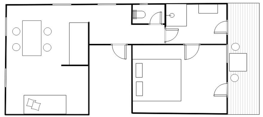 56 m² Ferienwohnung ∙ 1 Schlafzimmer ∙ 3 Gäste