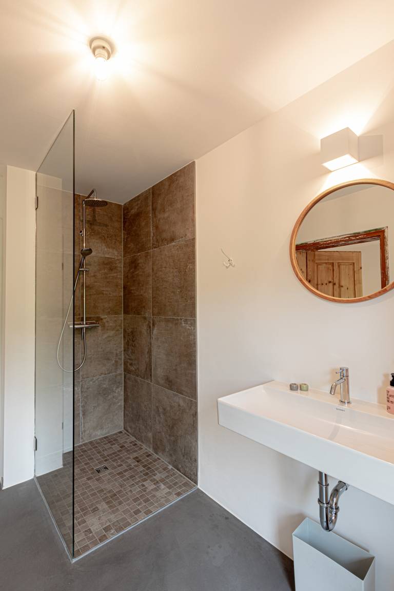 Ein separates WC sorgt für zusätzlichen Komfort. Nachhaltigkeit wird hier großgeschrieben: Die Wohnung wurde mit natürlichen Baustoffen saniert, nutzt Ökostrom und Pelletheizung. Die Außenanlage ist bienen- und insektenfreundlich gestaltet.