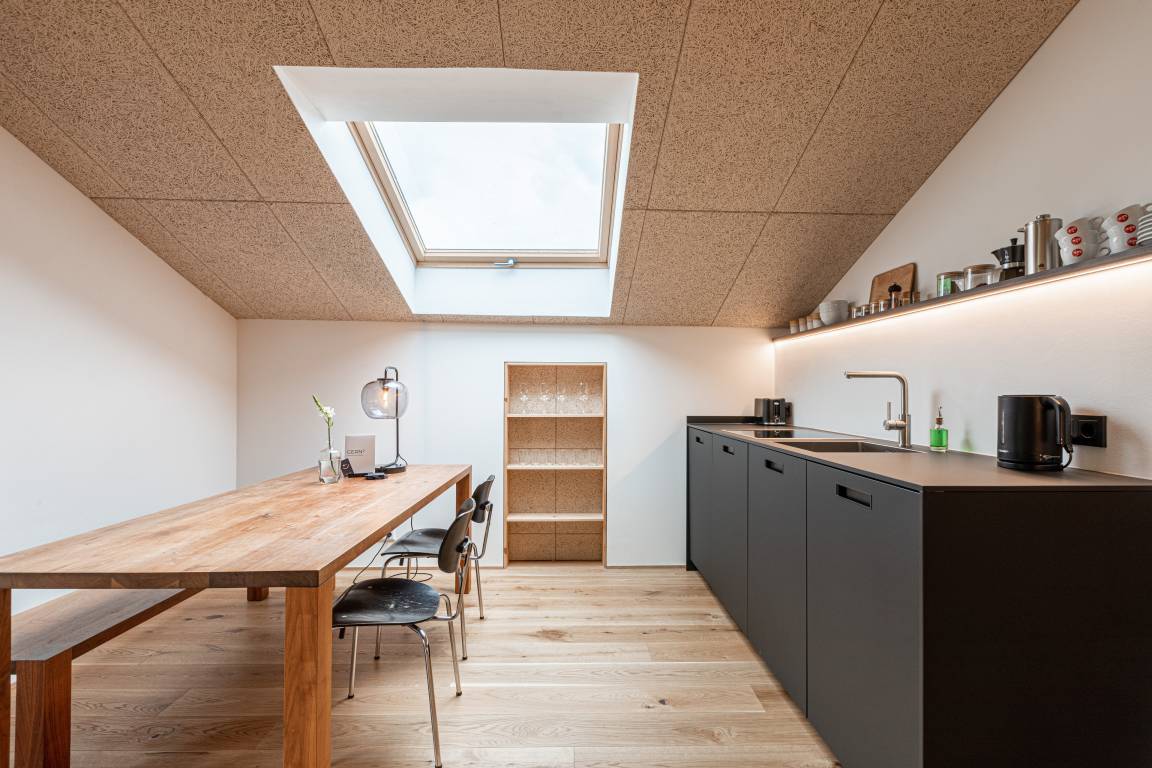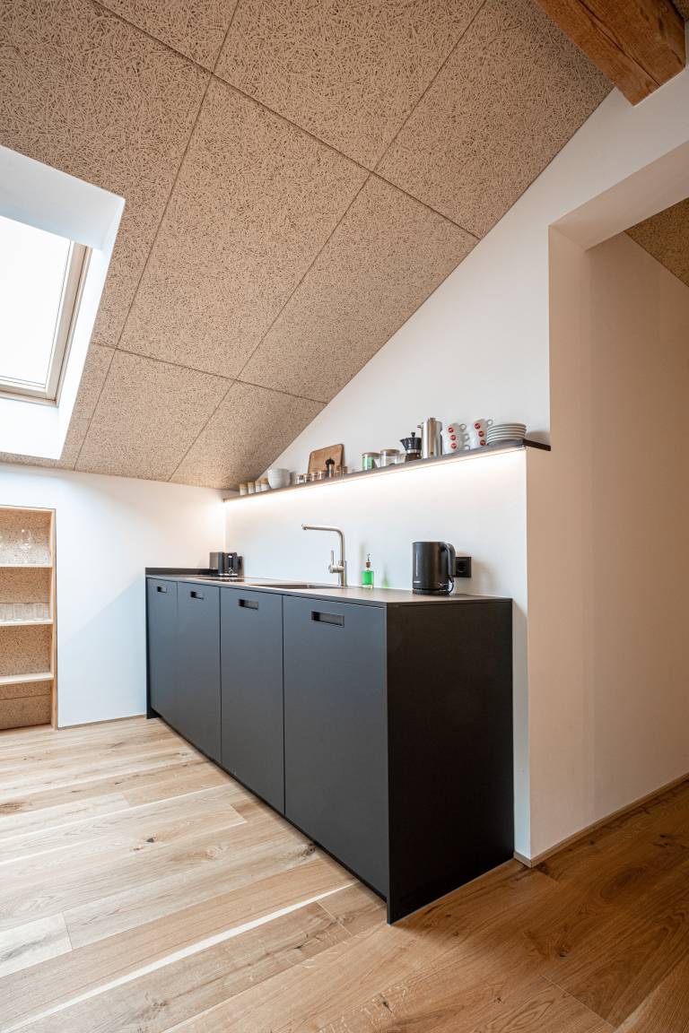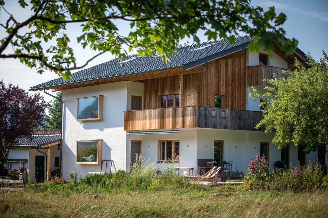 Nachhaltigkeit spielt eine zentrale Rolle: Die Wohnung wurde mit natürlichen Baustoffen saniert, nutzt Ökostrom sowie eine Pelletheizung. Die Außenanlage ist bienen- und insektenfreundlich gestaltet.