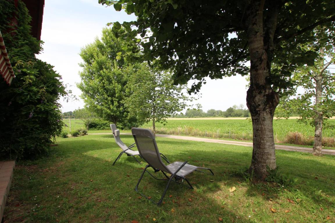 Großes Feld. Terrasse. Gartenmöbel, Grill, Liegestühle.