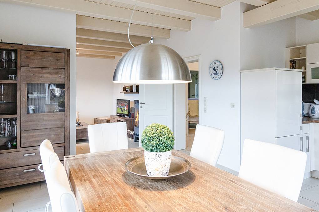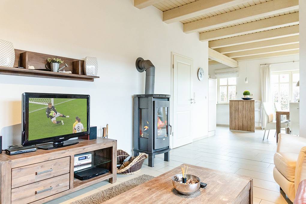 Haus: Schönes Ferienhaus mit Sauna und Kaminofen. Nichtraucherhaus. Gehobene Ausstattung mit moderner, geschmackvoller Einrichtung. 3 Schlafzimmer, 2 Bäder. Kostenloser Internetzugang (W-Lan). Zentralheizung. Waschmaschine, Trockner. Terrasse mit Sitzmöbeln, Strandkorb. Garten mit Rasenfläche, 1 Pkw-Stellplatz am Haus.