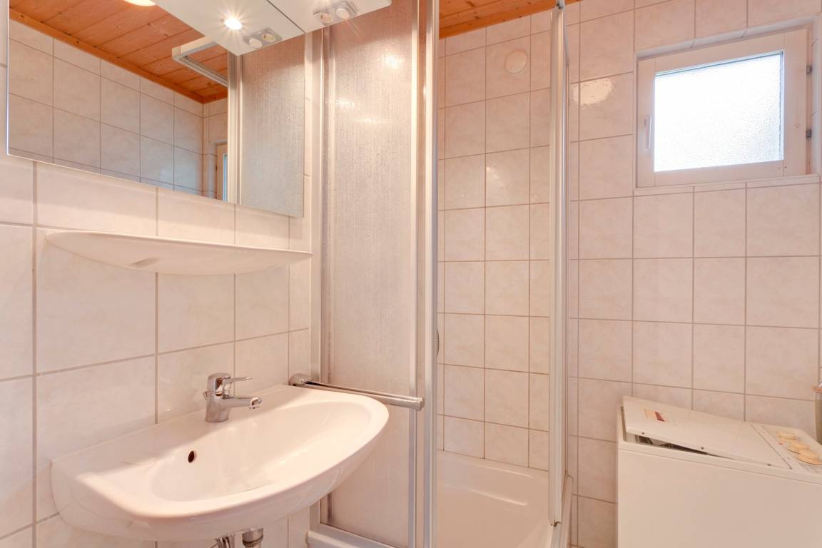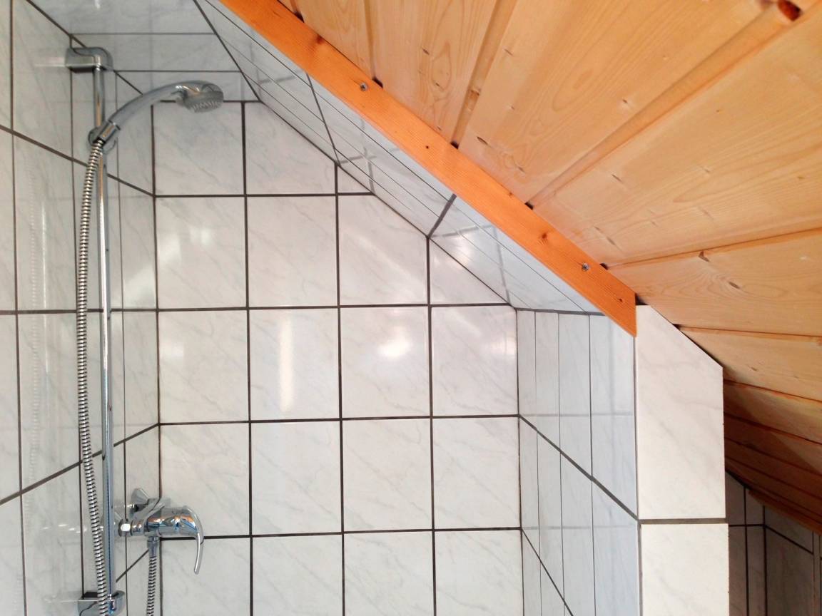 Im zweiten Badezimmer im Obergeschoss ist eine weitere Dusche mit Waschbecken und WC.