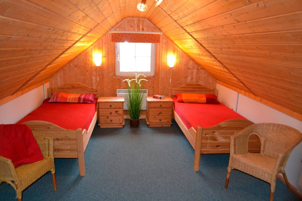Das Ferienhaus Vogelsang verfügt über 2 Schlafräume (1 Doppelbett, 1 Etagenbett), außerdem über einen Schlafbereich mit 2 Einzelbetten auf der Galerie im Dachgeschoss. Alle Schlafbereiche sind mit Fliegengittern geschützt.