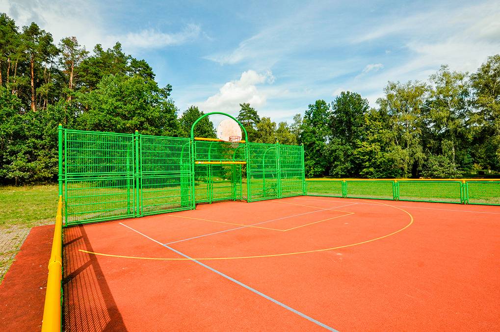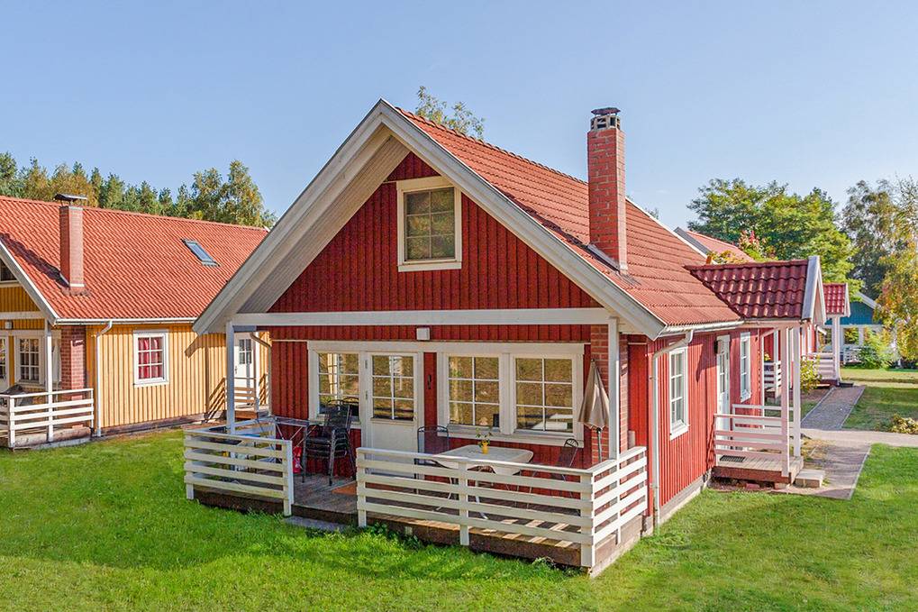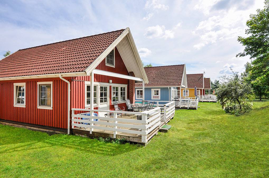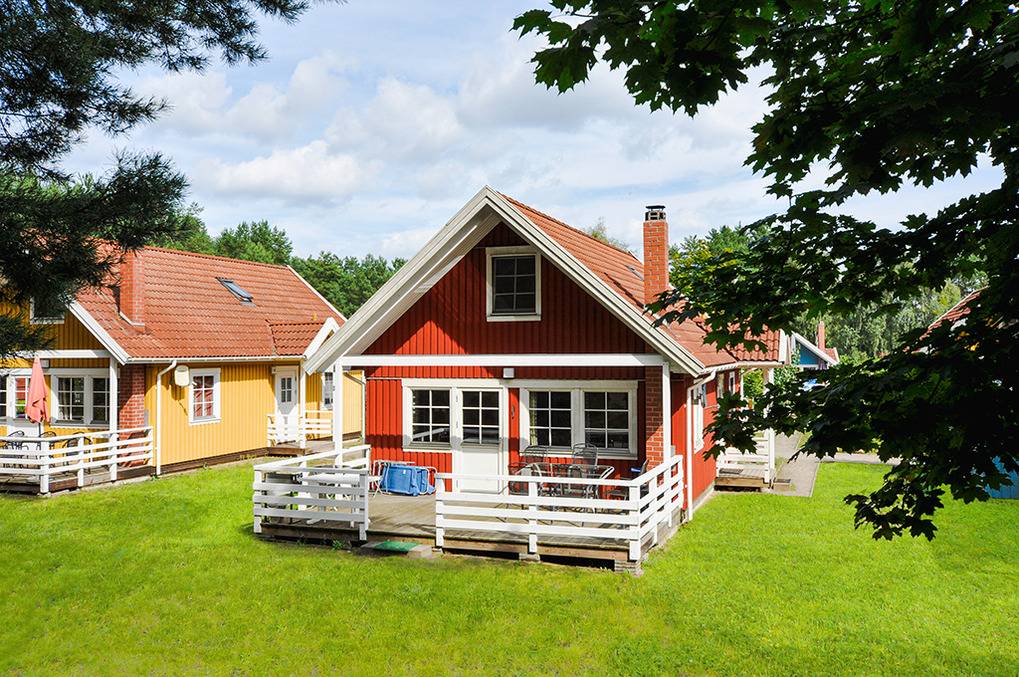 Haus: Sehr schöne, familiäre Ferienhausanlage im skandinavischen Stil. Zur Anlage gehört eine moderne Sportanlage mit Fußball-, Volleyball-, Basketballfeld. Boots- und Kanuverleih (Gebühr).