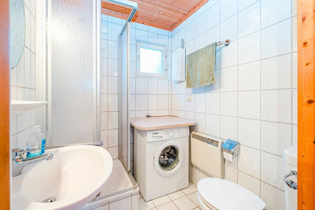 D 52.1A Ferienhaus 3-6 Pers.: Großzügiges 4-Zimmerhaus mit 85 qm Wohnfläche über 2 Etagen. Parterre: Geschmackvoller, komfortabler Wohn-/Essraum mit Kaminofen, Couchgarnitur, Esstisch, moderner Küchenzeile (Backofen, Spülmaschine). Doppelzimmer. Bad: Du, Wb, WC, Waschmaschine. Sauna. Dachgeschoss: Doppelzimmer. 2-Bettzimmer. Separates WC.