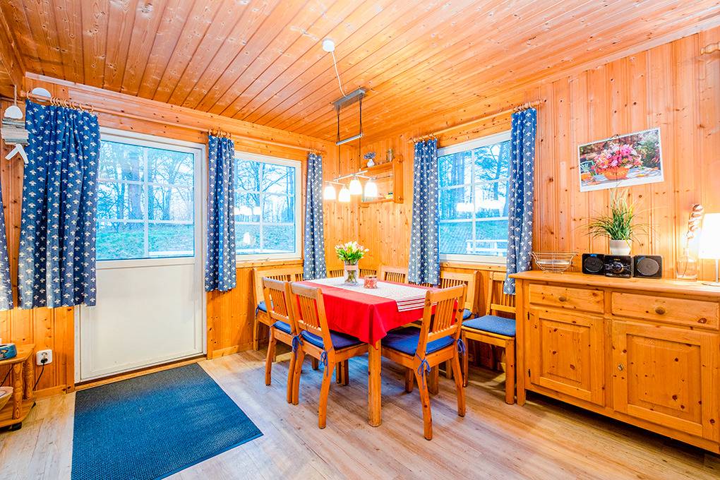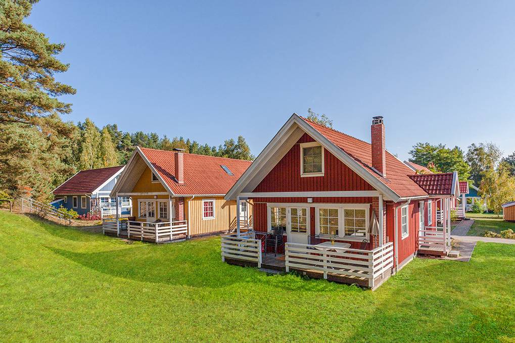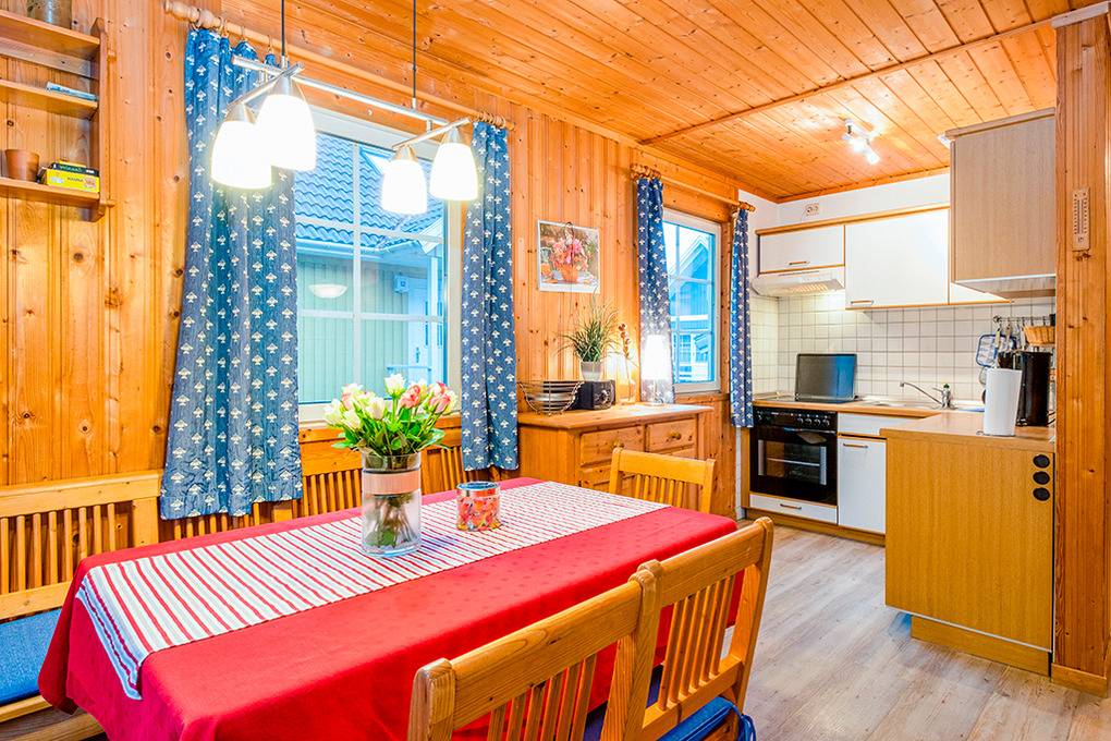 Alle Ferienhäuser mit komfortabler Einrichtung, Sat-TV, DVD, Radio, Kaminofen, moderner Einbauküche (Spülmaschine). Internetzugang über W-Lan. Einige Häuser teils mit Sauna. Gemütliches Ambiente durch Holzvertäfelungen im ganzen Haus. Alle Häuser mit besonders familienfreundlicher Einrichtung (Wickelauflage, Kinderbett). E-Heizung. Warmwasser über Durchlauferhitzer. Schöne Terrasse mit Sitzmöbeln, Grill. 1 Pkw-Stellplatz pro Haus in der Anlage.