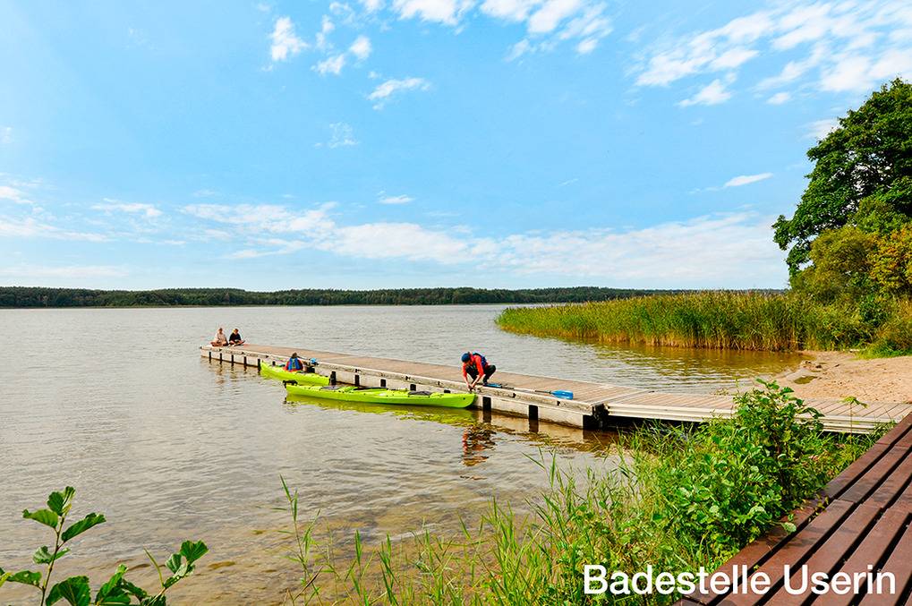 Das beschauliche Userin liegt im Herzen Mecklenburgs am südlichen Rand des Müritz Nationalparks. Neustrelitz mit historischer Innenstadt, Geschäften 7 km östlich. Wesenberg mit Aussichtsturm, historischer Burg 7 km südlich. Der motorbootfreie Useriner See gehört zu den oberen Havelseen. Sie sind bekannt für Ihren reichen Bestand an Fischen, ein Eldorado für Angler, Paddler und alle Wassersportbegeisterten.