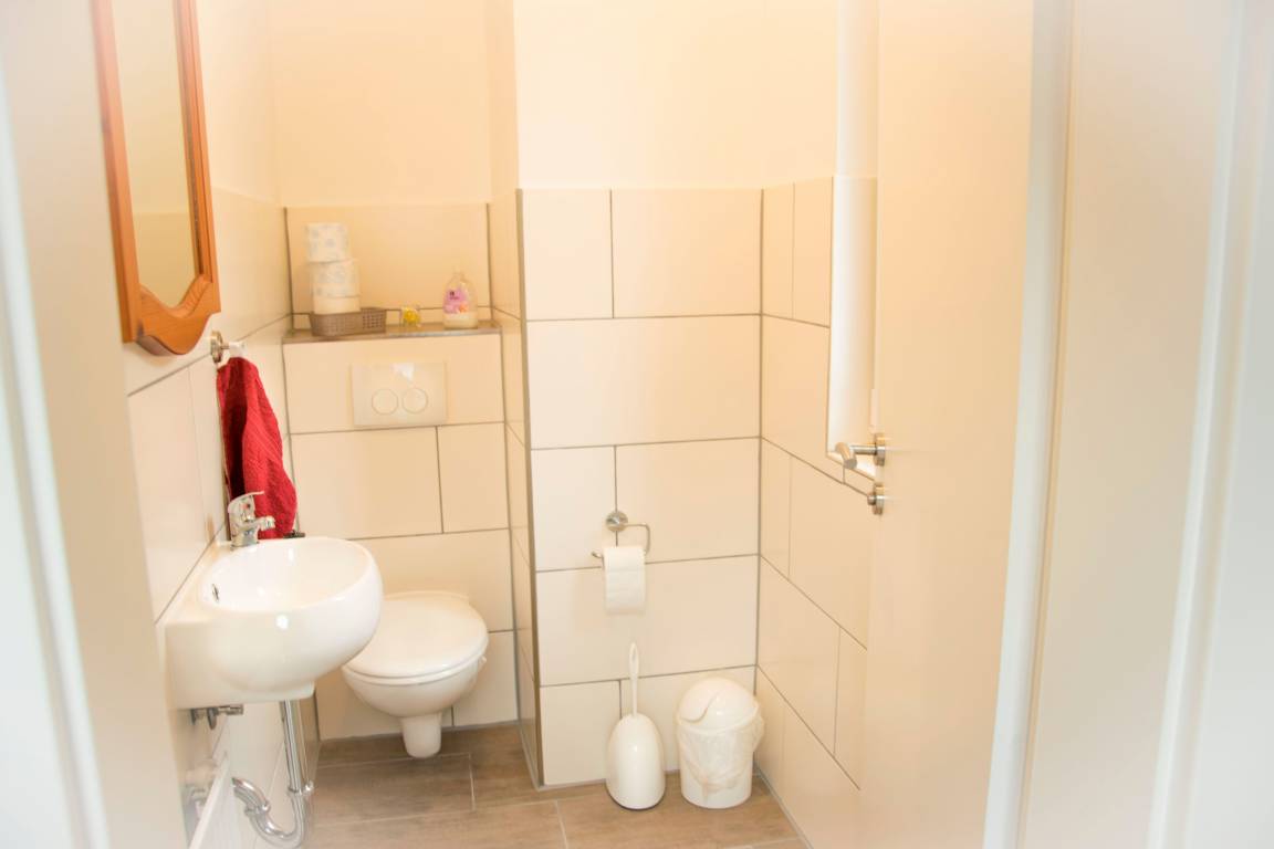 Je ein Tageslichtbad je Etage (wobei EG komplett Behindertengerecht) und 2 separate Gäste-WCs.