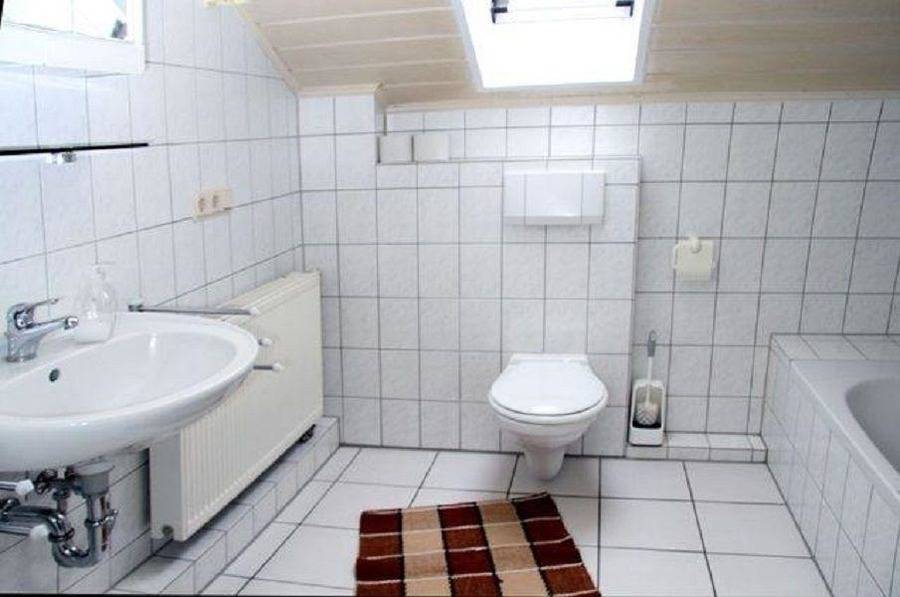 Im Tagelichtbadezimmer finden Sie sowohl eine Dusche, als auch eine Badewanne, sowie ein Föhn.
