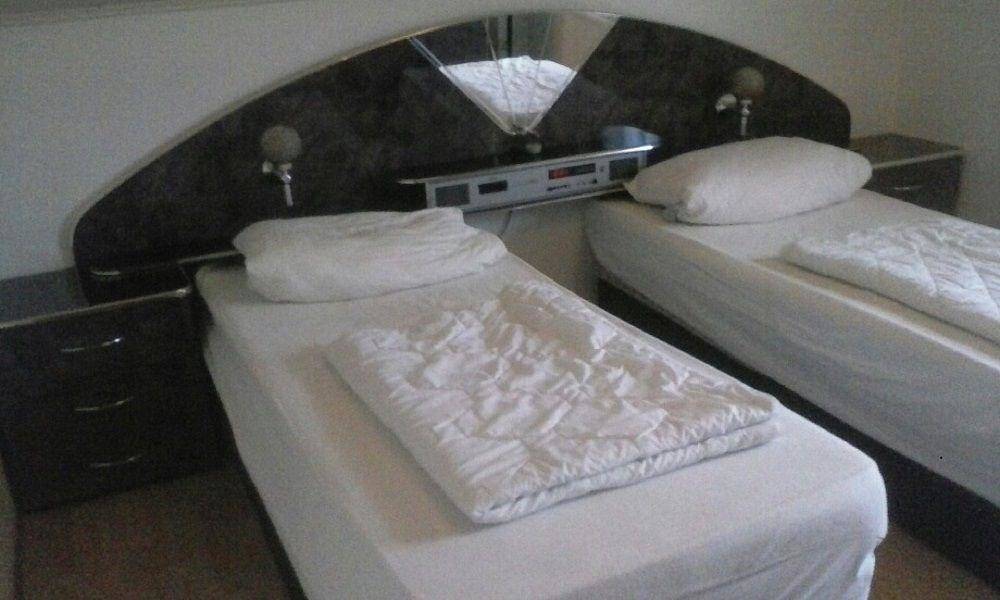 Im Schlafzimmer befindet sich zwei Boxspringbetten (90x200), welche sich auch zum Doppelbett zusammenstellen lassen, zwei Nachtschränkchen Überbau mit integriertem Radiowecker/ CD, 1 Herrendienern und einem großen Schrank. .