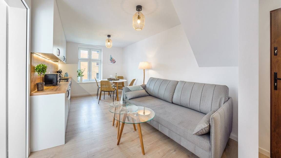 Zu den gewählten Apartments darf man mit dem Hund ankommen. Die zusätzlichen Kosten des Aufenthalts mit einem vierbeinigen Freund betragen 100 PLN (Einzelgebühr). Die Gäste, die den Aufenthalt mit dem Hund planen, bitten wir um eine frühere Kontaktaufnahme mit unserem Service im lokalen Büro.