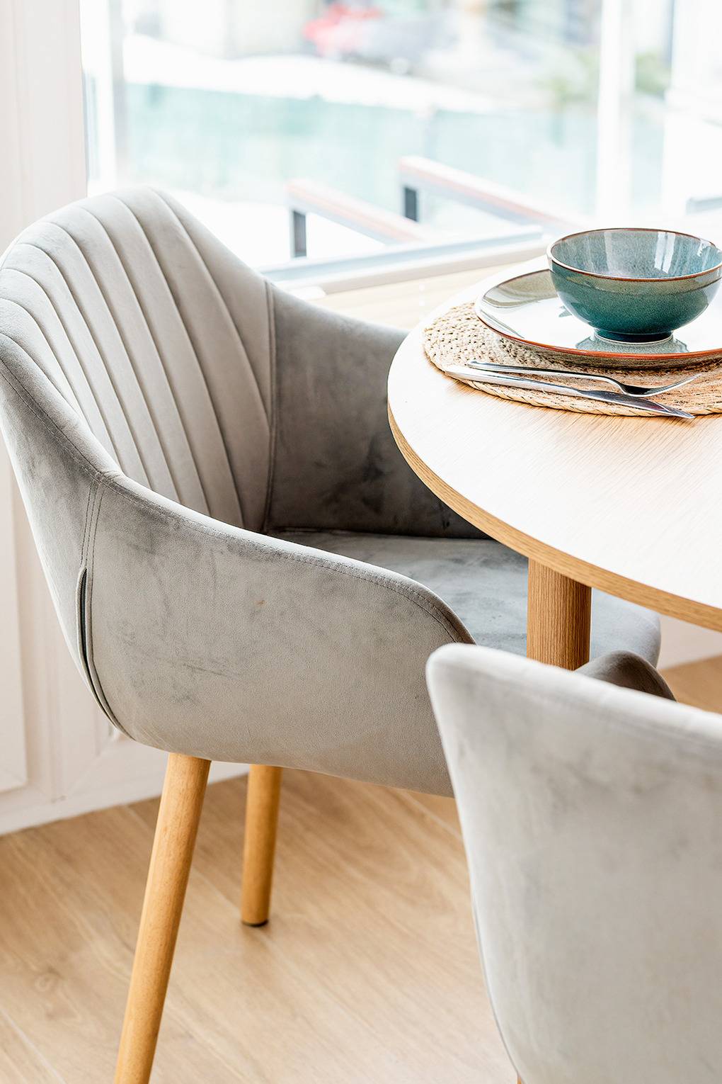 Mit viel Liebe zum Detail, maritim gestaltete, gemütliche Ferienwohnung mit moderner, freundlicher Einrichtung. Kostenloses, schnelles Internet (Glasfaser) auch über WLAN. Fußbodenheizung. Warmwasser über Kombi-Durchlauferhitzer mit Warmwasserspeicher (80l.) Balkon mit Sitzmöbeln, schönem Blick auf den Garten.