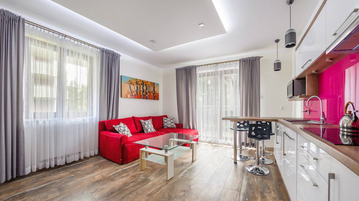 Zu den gewählten Apartments darf man mit dem Hund ankommen. Die zusätzlichen Kosten des Aufenthalts mit einem vierbeinigen Freund betragen 100 PLN (Einzelgebühr). Die Gäste, die den Aufenthalt mit dem Hund planen, bitten wir um eine frühere Kontaktaufnahme mit unserem Service im lokalen Büro.