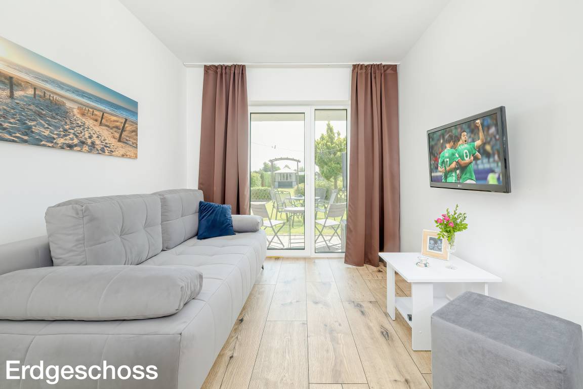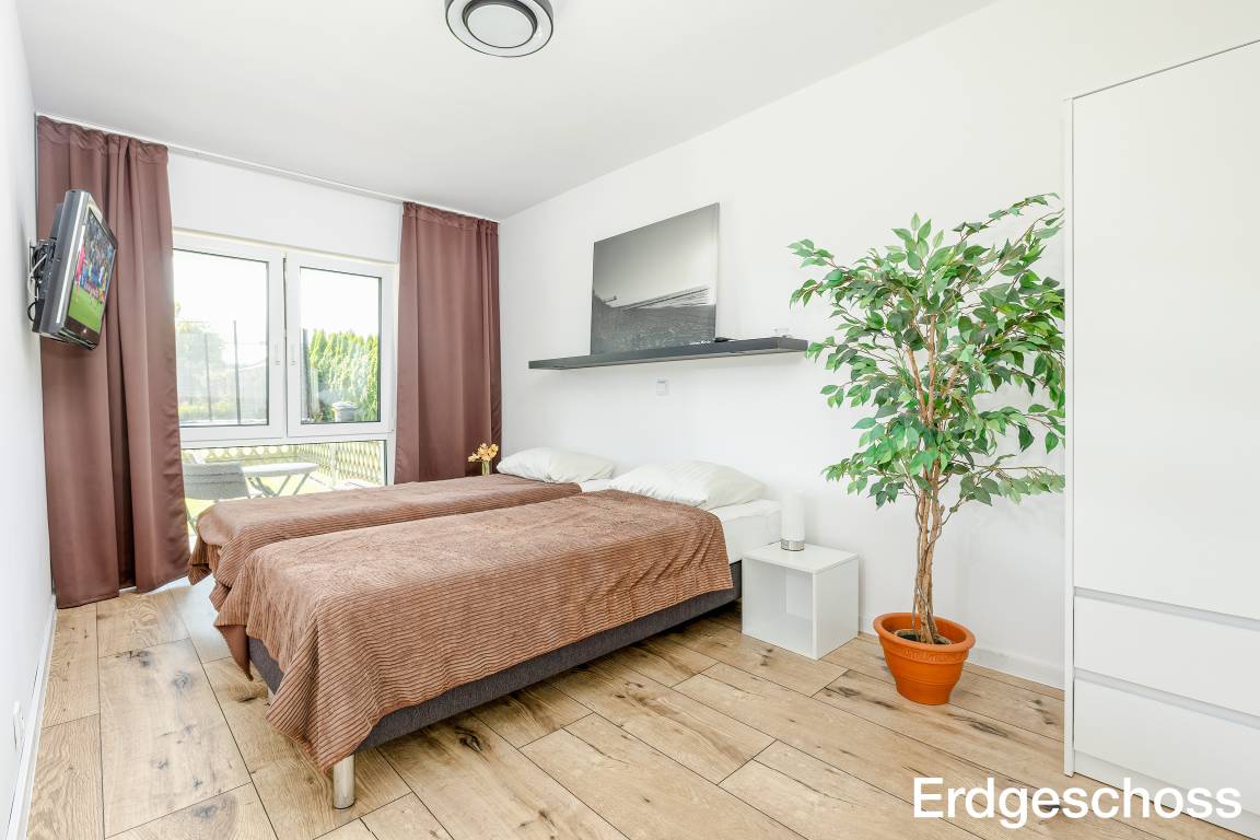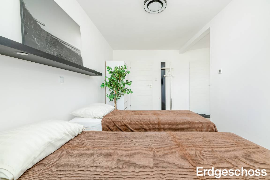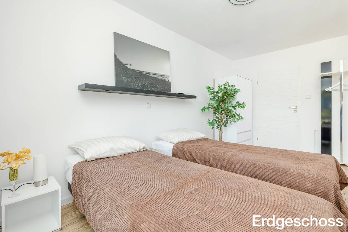 PL 50.28 Ferienhaus 2-12 Pers.: Geräumige 7-Zimmer-Doppelhaushälfte mit 170 qm Wohnfläche. Parterre: Doppelzimmer mit angrenzendem Bad mit ebenerdiger Dusche, Wb, WC. Wohn-Schlafraum mit Flachbild-TV, Küchenzeile mit 2 E-Platten Ceranfeld, Kühlschrank, bodentiefen Fenstern. 2 Einzelbetten und Klappcouch (160 cm Breite). Bad/WC. 1. Etage: Großzügiger, komfortabler, lichtdurchfluteter Wohn-/Essraum mit bodentiefen Fenstern, Kamin, großer Sitzgarnitur, Couchtisch, Flachbild Sat-TV (deutsche Programme), Esstisch. Balkon mit Sitzmöbeln. Funktionale Küche mit 4 E-Platten Ceranfeld, Backofen, Abzugshaube, großer Kühlgefrierkombination, Mikrowelle, Spülmaschine. Bad/WC. Dachgeschoß: 3-Bettzimmer mit franz. Bett, Einzelbett. Drei-Bettzimmer mit Einzelbetten. Balkon. Doppelzimmer mit franz. Bett. Balkon. Bad mit Badewanne, Wb, WC, Waschmaschine. Überdachte Terrasse mit Sitzmöbeln, davor Garten mit gemauertem Grill, Gartenmöbeln.