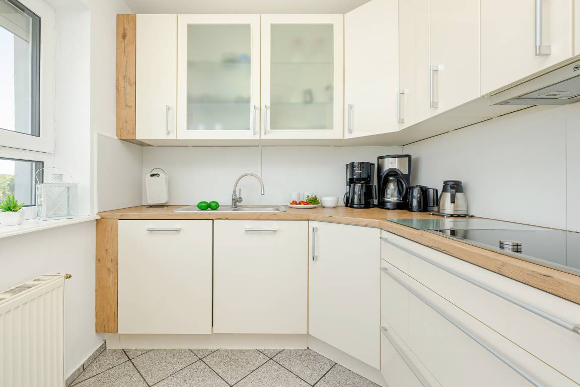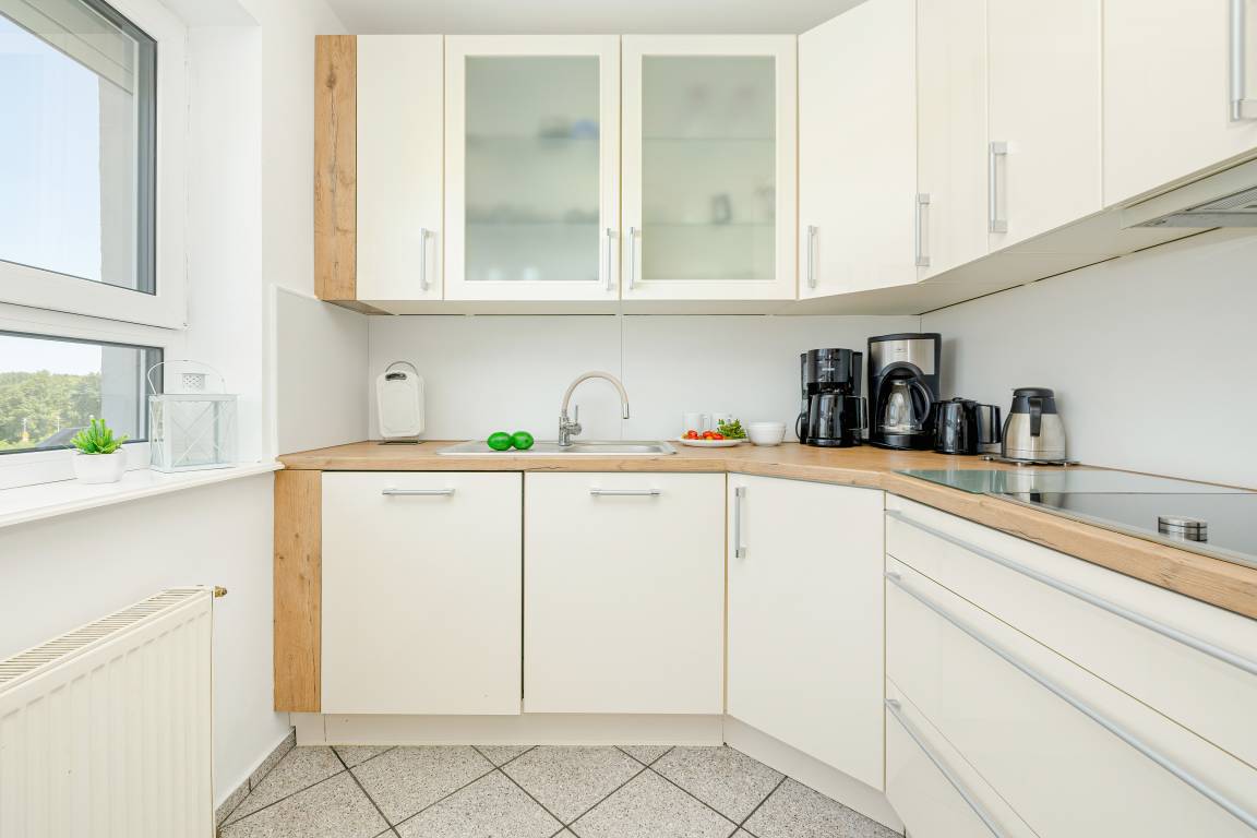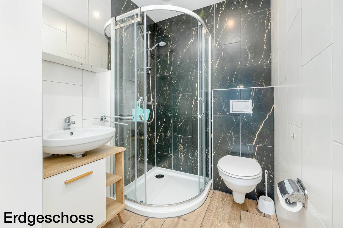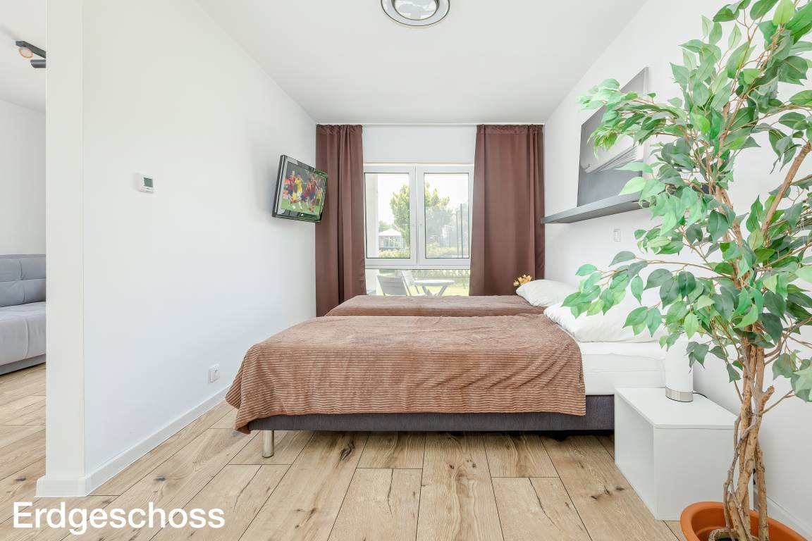 PL 50.28 Ferienhaus 2-12 Pers.: Geräumige 7-Zimmer-Doppelhaushälfte mit 170 qm Wohnfläche. Parterre: Doppelzimmer mit angrenzendem Bad mit ebenerdiger Dusche, Wb, WC. Wohn-Schlafraum mit Flachbild-TV, Küchenzeile mit 2 E-Platten Ceranfeld, Kühlschrank, bodentiefen Fenstern. 2 Einzelbetten und Klappcouch (160 cm Breite). Bad/WC. 1. Etage: Großzügiger, komfortabler, lichtdurchfluteter Wohn-/Essraum mit bodentiefen Fenstern, Kamin, großer Sitzgarnitur, Couchtisch, Flachbild Sat-TV (deutsche Programme), Esstisch. Balkon mit Sitzmöbeln. Funktionale Küche mit 4 E-Platten Ceranfeld, Backofen, Abzugshaube, großer Kühlgefrierkombination, Mikrowelle, Spülmaschine. Bad/WC. Dachgeschoß: 3-Bettzimmer mit franz. Bett, Einzelbett. Drei-Bettzimmer mit Einzelbetten. Balkon. Doppelzimmer mit franz. Bett. Balkon. Bad mit Badewanne, Wb, WC, Waschmaschine. Überdachte Terrasse mit Sitzmöbeln, davor Garten mit gemauertem Grill, Gartenmöbeln.
