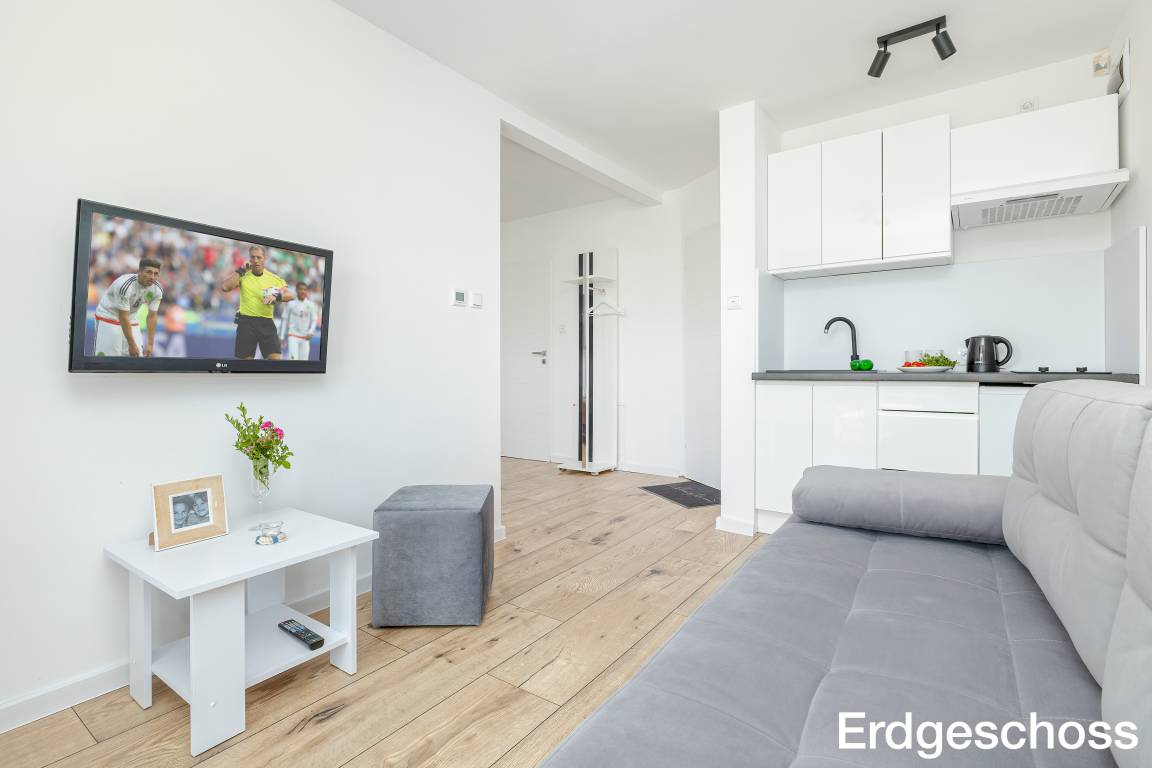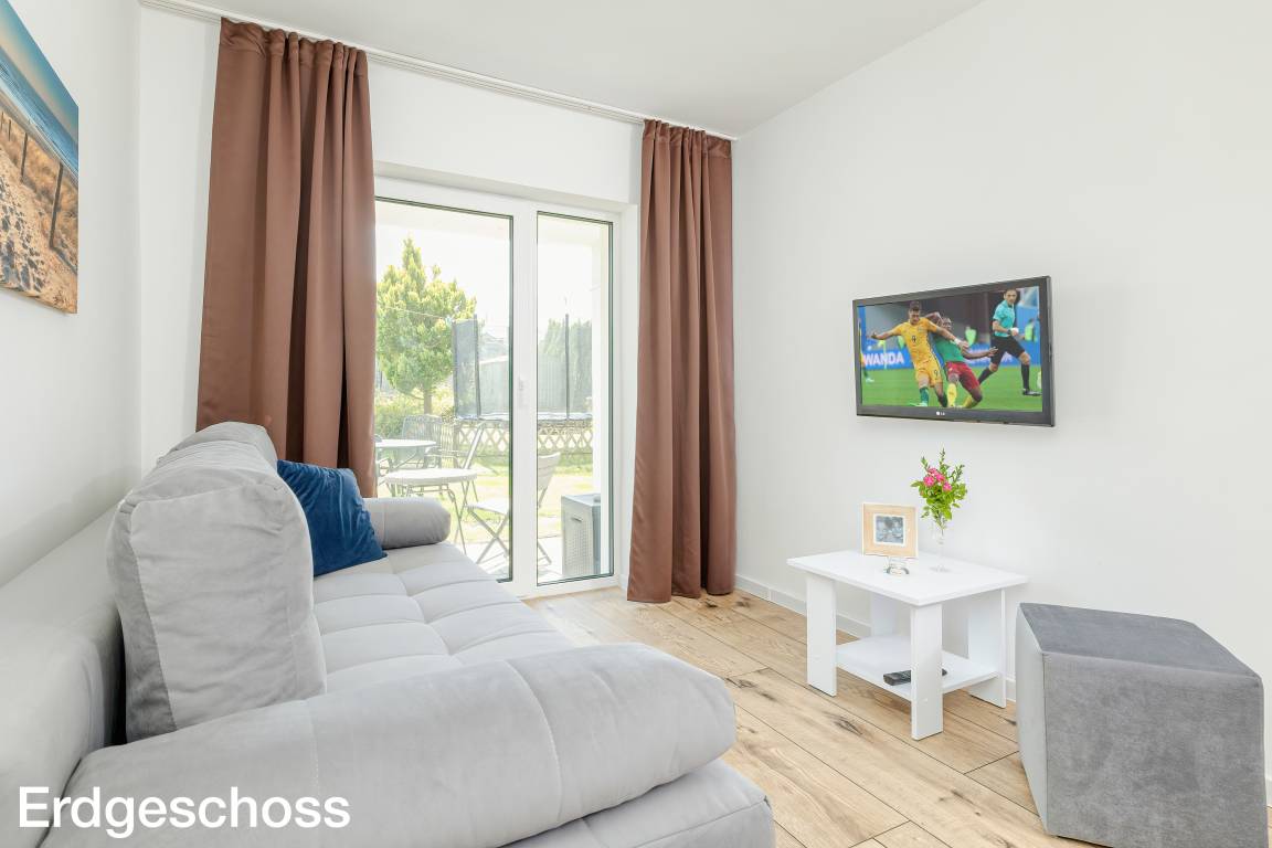 Ort: Ustronie Morskie (Henkenhagen). Schöne, ruhige Lage, nur 750 m vom Ostseestrand entfernt. Ortsmitte mit Geschäften 550 m. Lebensmittelladen 250 m. Restaurant 550 m. Aqua-Park mit Hallenbad, Rutsche, Außenbecken, Whirlpool 200 m. Sportzentrum mit Bowlingbahn, Tennisplatz 200 m. Öffentlicher Spielplatz mit Volleyballfeld und Fitnessgeräten 150 m. Kletterpark 850 m.