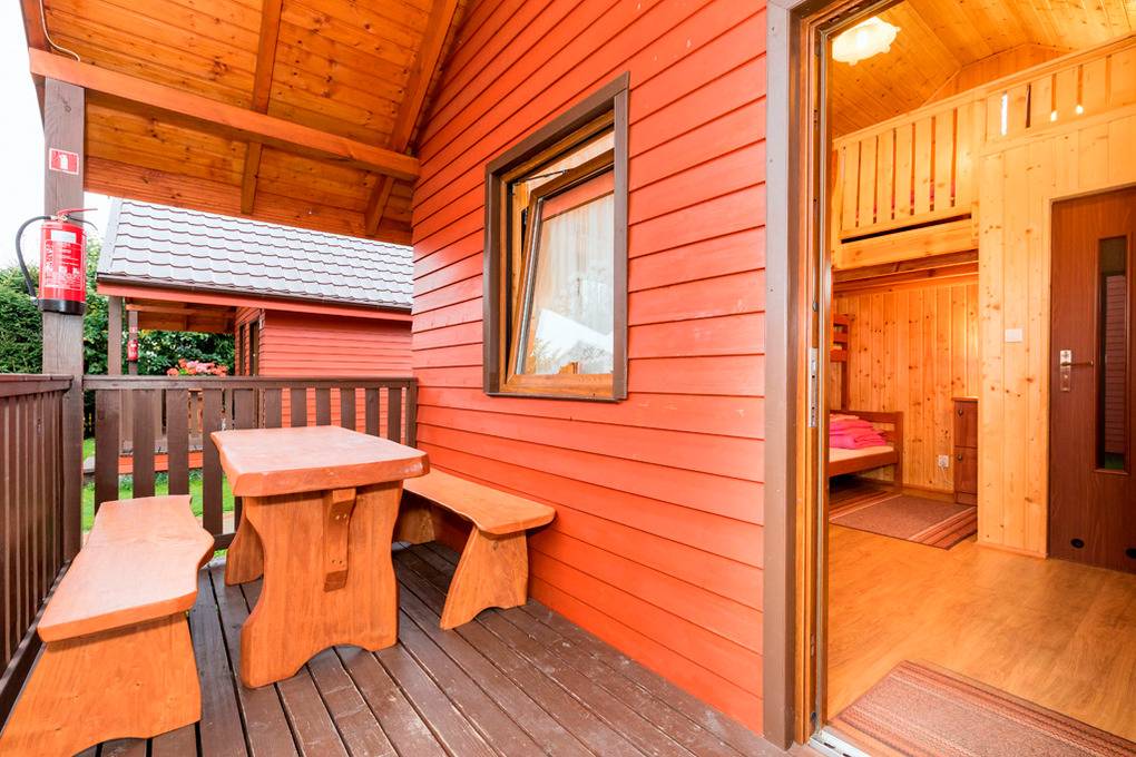 Haus: Sehr gepflegte Ferienhausanlage mit 18 schönen Holzchalets auf einem weitläufigen Grundstück. 12 Holzchalets für bis zu 4 Personen (PL 050.024), 6 Holzchalets für bis zu 7 Personen (PL 050.025). In der Anlage: Rezeption, Kinderspielplatz mit Schaukeln, Rutsche, Klettergerüst, Sandkasten, Trampolin, Volleyball-, Basketball-, Fußballfeld, Fahrradverleih (im Preis inklusiv, nach Verfügbarkeit). Gemeinschaftsraum mit TV, Kicker, Tischtennisplatte und Sitzmöglichkeiten.