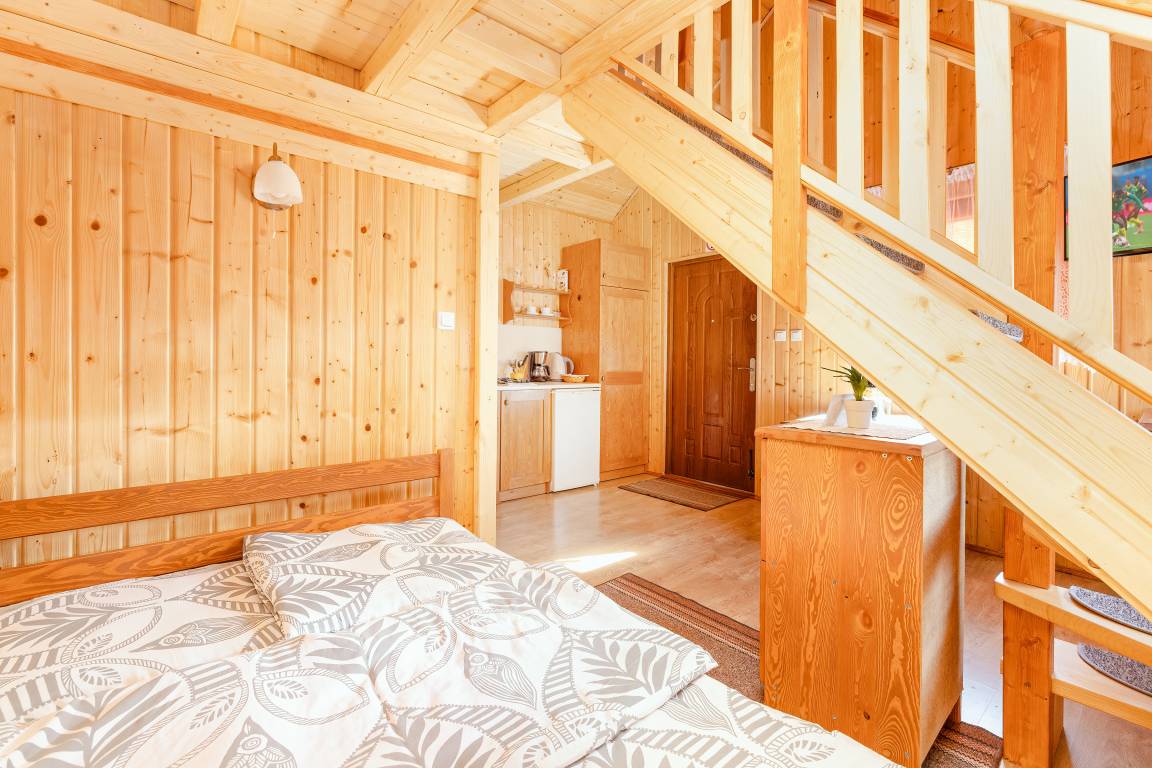 Rustikale Holzchalets mit gepflegter Einrichtung. Kostenloses Internet über WLan. Heizung mit E-Radiatoren (Bestellung, Gebühr), Klimaanlage mit Heizfunktion im EG (nur PL 50.25), Warmwasser über E-Boiler. Terrasse mit Sitzmöbeln, Grill. 1 Parkplatz/Ferienhaus (PL 50.24) bzw. 2 Parkplätze/Ferienhaus (PL 50.25) auf dem umzäunten Grundstück (Gebühr).