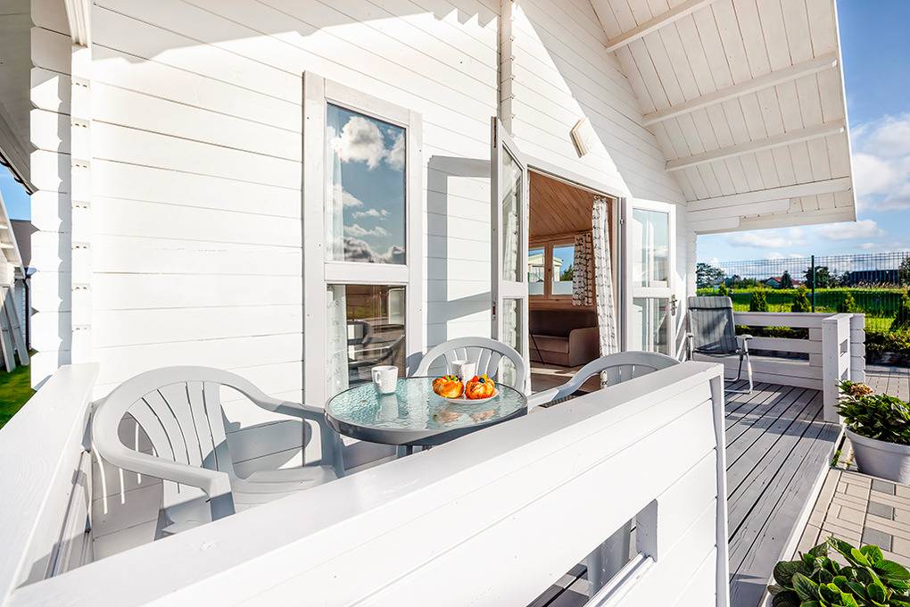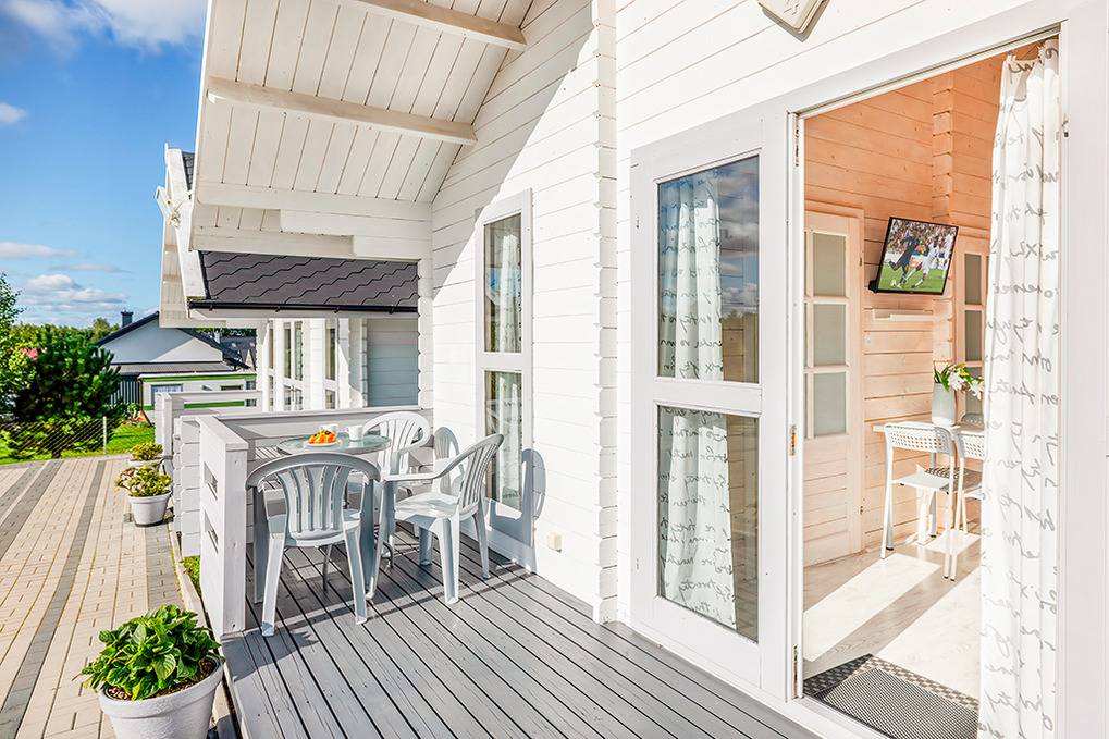 Gemütliche Ferienhäuser mit freundlicher Einrichtung. Kostenloses Internet über WLan. Heizung mit E-Radiatoren (auf Wunsch), Warmwasser über E-Boiler (30 l). Überdachte Terrasse mit Sitzmöbeln. 1 Pkw-Stellplatz/Ferienhaus auf dem umzäunten Grundstück im Mietpreis inklusiv. Hinweis: Wir empfehlen eine Belegung mit maximal 3 Personen auf Grund der schmalen Schlafcouch (100 cm Breite) im Tagesraum.