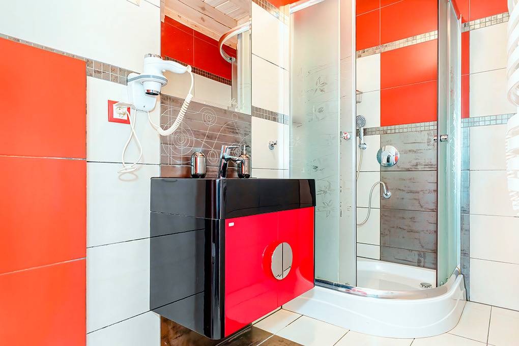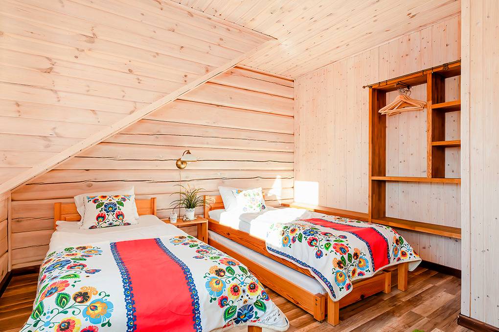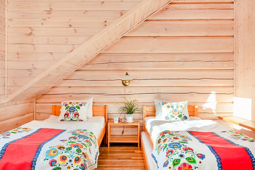 Gemütliche Ferienhäuser und Ferienwohnungen mit moderner, freundlicher Einrichtung. Kostenloses Internet (WLan). Zentralheizung, Warmwasser über E-Boiler (100 l). Halbüberdachte Terrasse oder Balkon mit Sitzmöbeln, Grill. Haustiere erlaubt gegen Gebühr (nicht in PL 50.7). 1 Parkplatz/ Objekt auf dem umzäunten Grundstück (Gebühr).